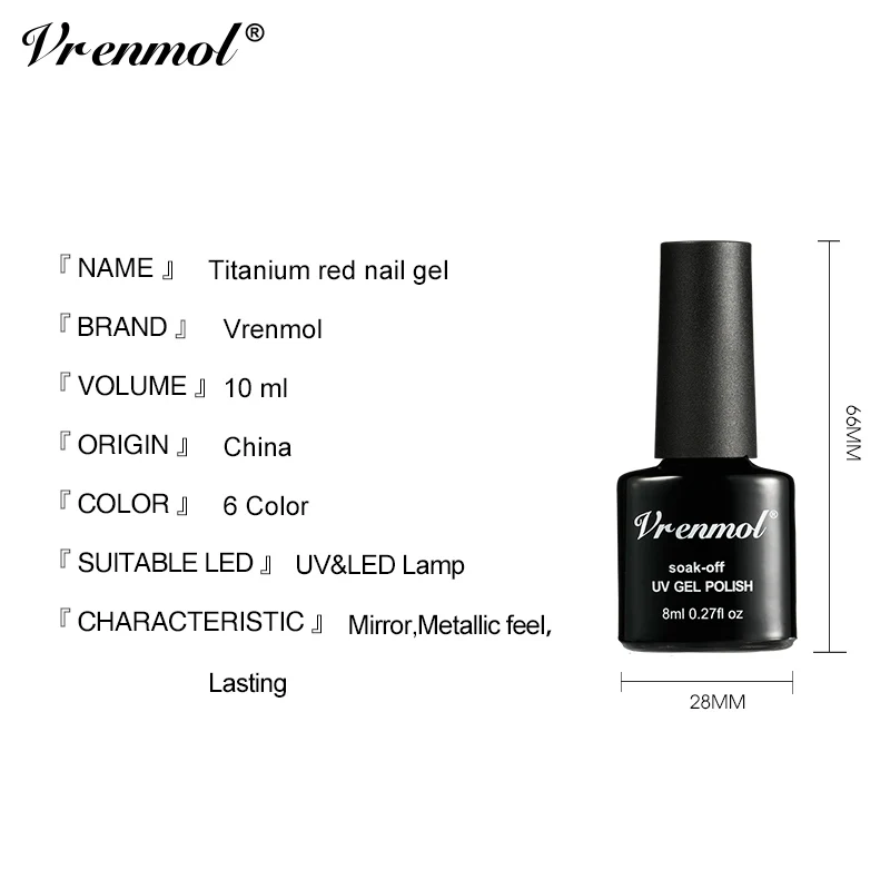 Vrenmol 8 мл новейший титановый красный лак для ногтей Блестящий зеркальный металлический яркий УФ-гель лак Гибридный лак для ногтей