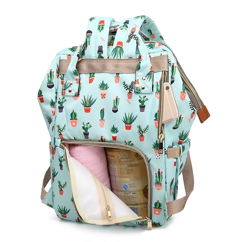 Рюкзак для мам с принтом кактуса, подвесная тележка для подгузников, рюкзак для ухода за ребенком, сумка для мам, рюкзак для подгузников