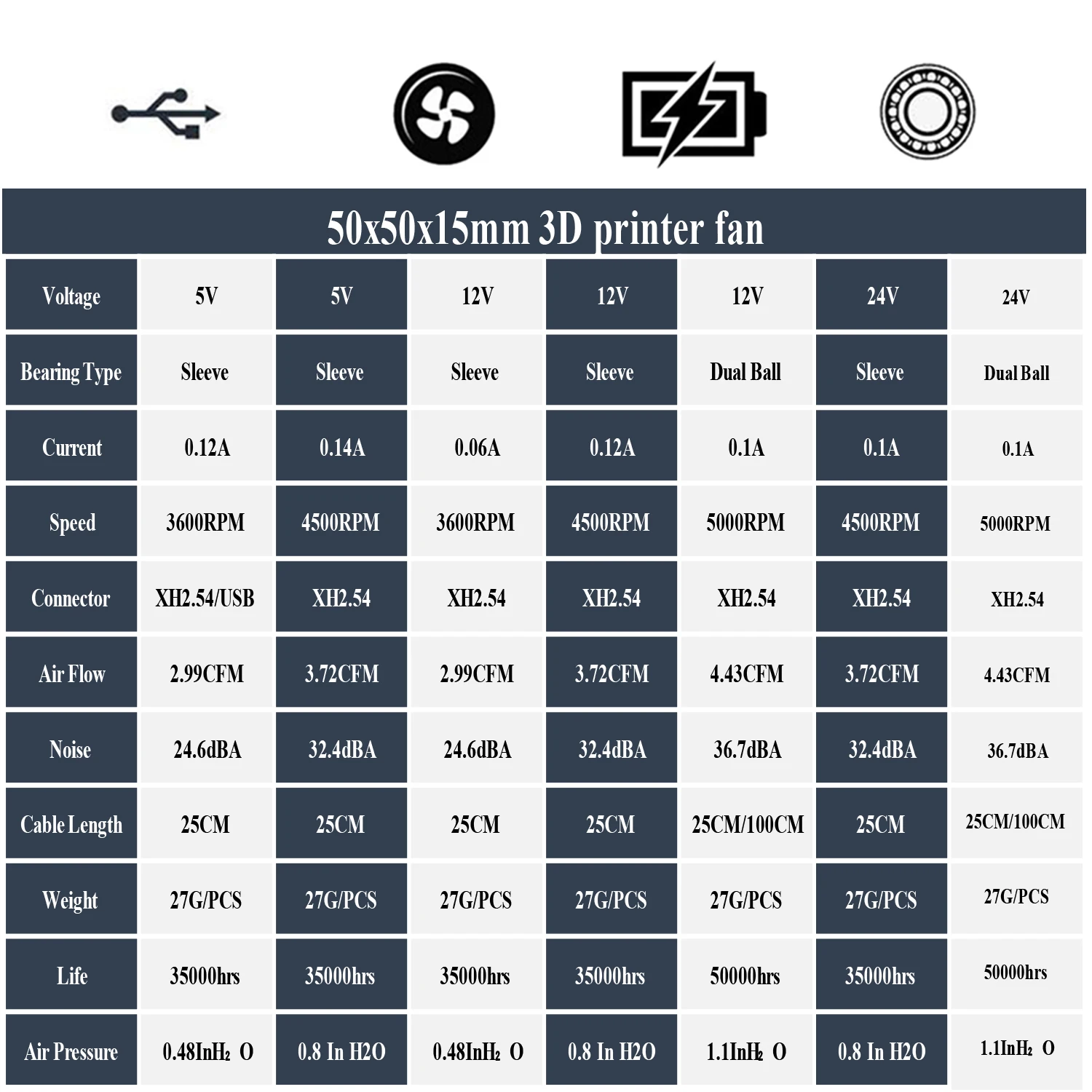 Вентилятор охлаждения Gdstime 50 мм, 24 В, 12 В, 5 В, 2 шт.