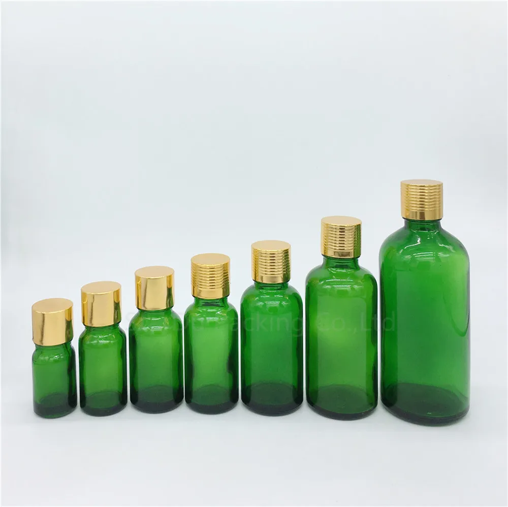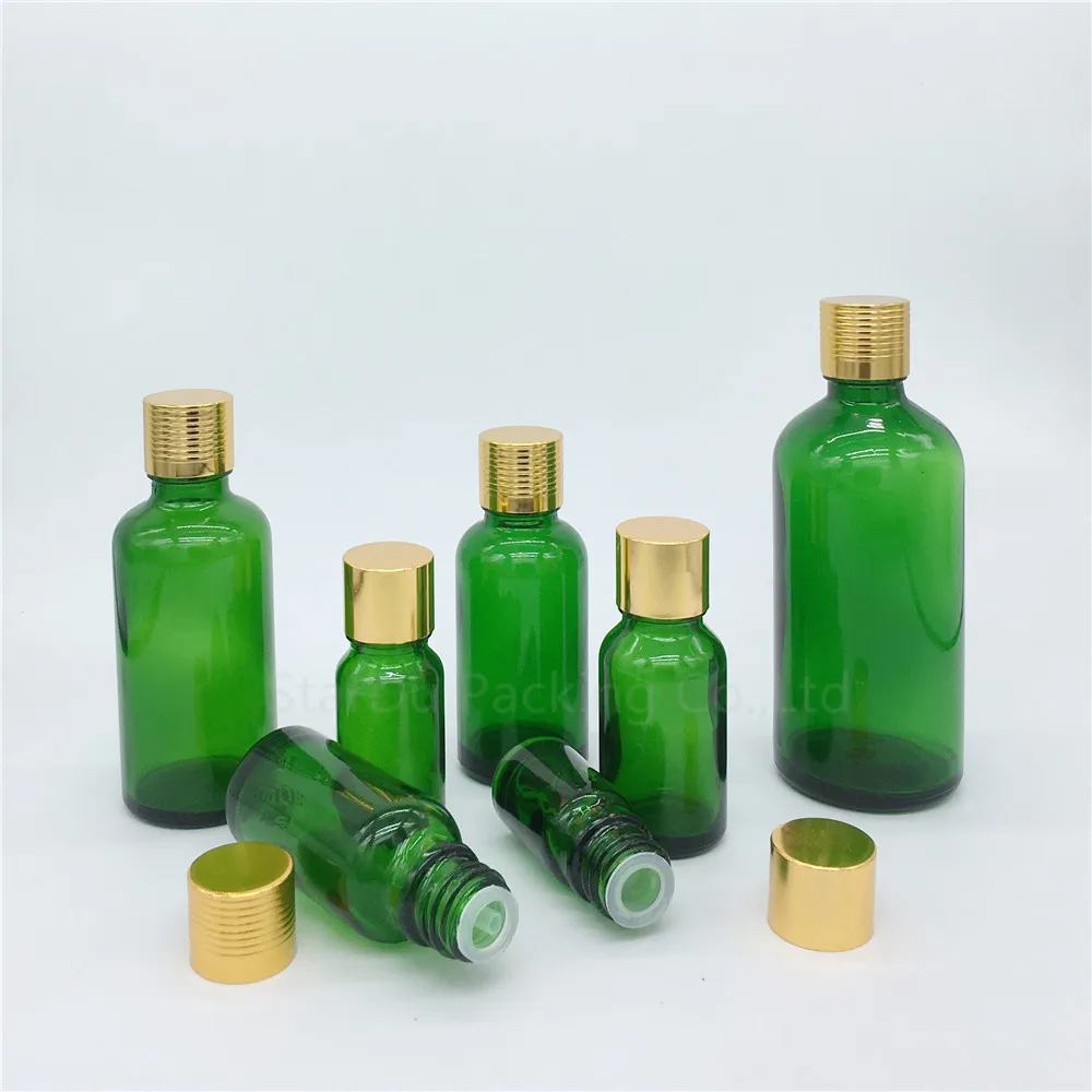 Флакон для эфирных масел 5 мл, 10 мл, 15 мл, 20 мл, 30 мл, 50 мл, 100 мл, зеленое стекло, флакон для духов с золотой винтовой крышкой