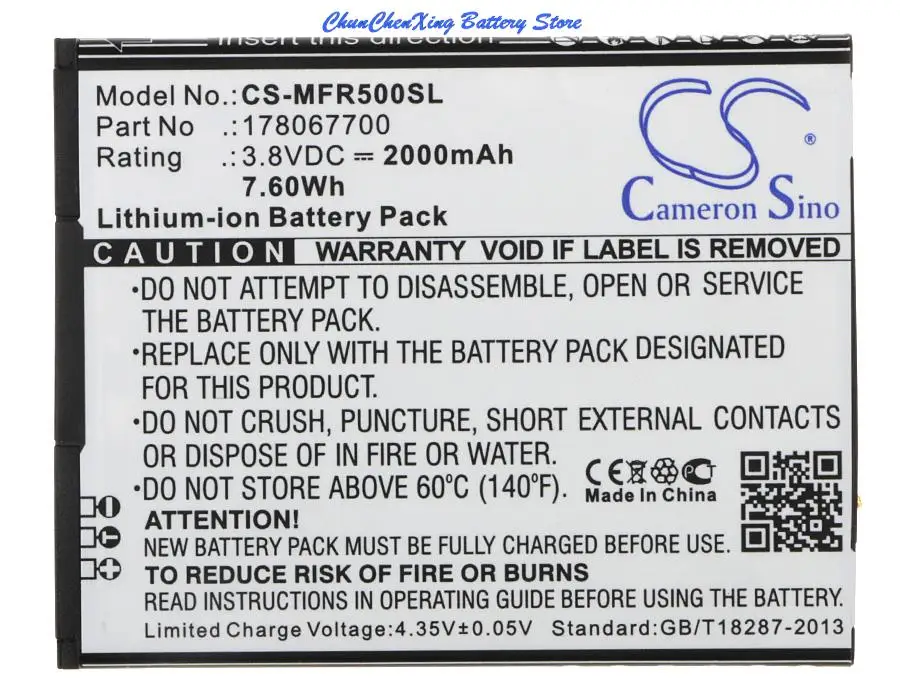 Cameron Sino 2000mAh аккумулятор 178067700 для Mobiwire Ahiga, Pegasus, TH305L-XDFBH0000176 для KAZAM Thunder 350L, для SFR Startrail 5