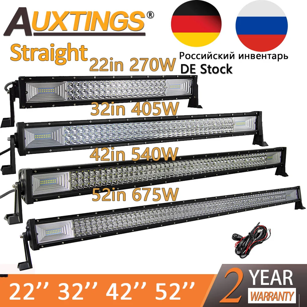 Светодиодсветильник панель для автомобилей Auxtings, панель длиной 22, 32, 42, 52 дюйма, 3 ряда, 4x4, светильник грузовиков, квадроциклов, крыш, внедорожников