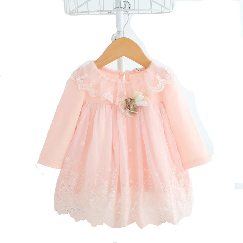 Осеннее платье для маленьких девочек, милое Хлопковое платье с кружевной вышивкой для новорожденных, детское платье на день рождения, детская одежда с длинными рукавами, DQ917