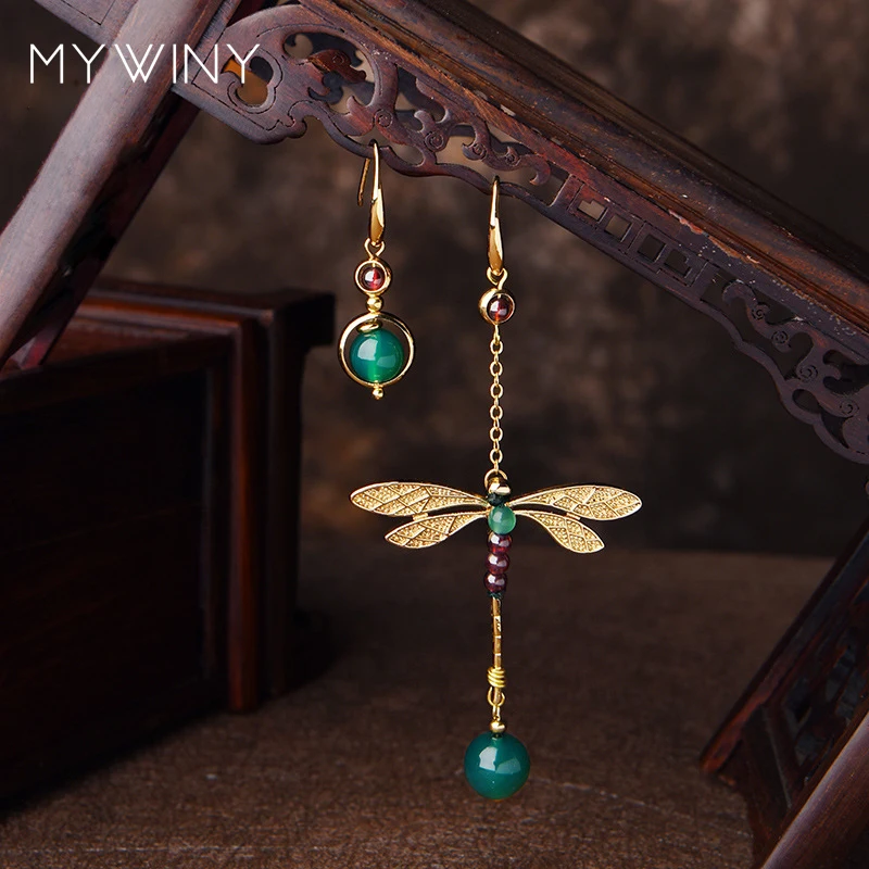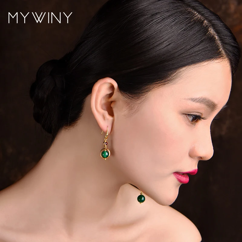 Новые Медные Винтажные серьги drago для женщин, зеленые натуральные Этнические серьги, ювелирные изделия, модные длинные серьги-подвески