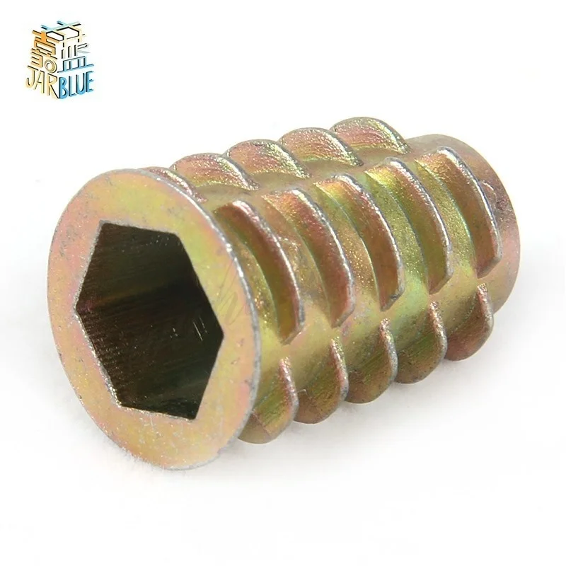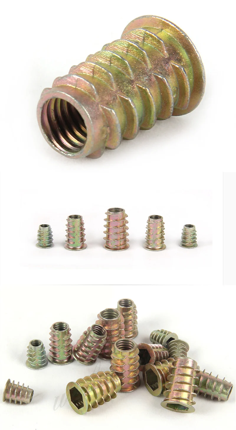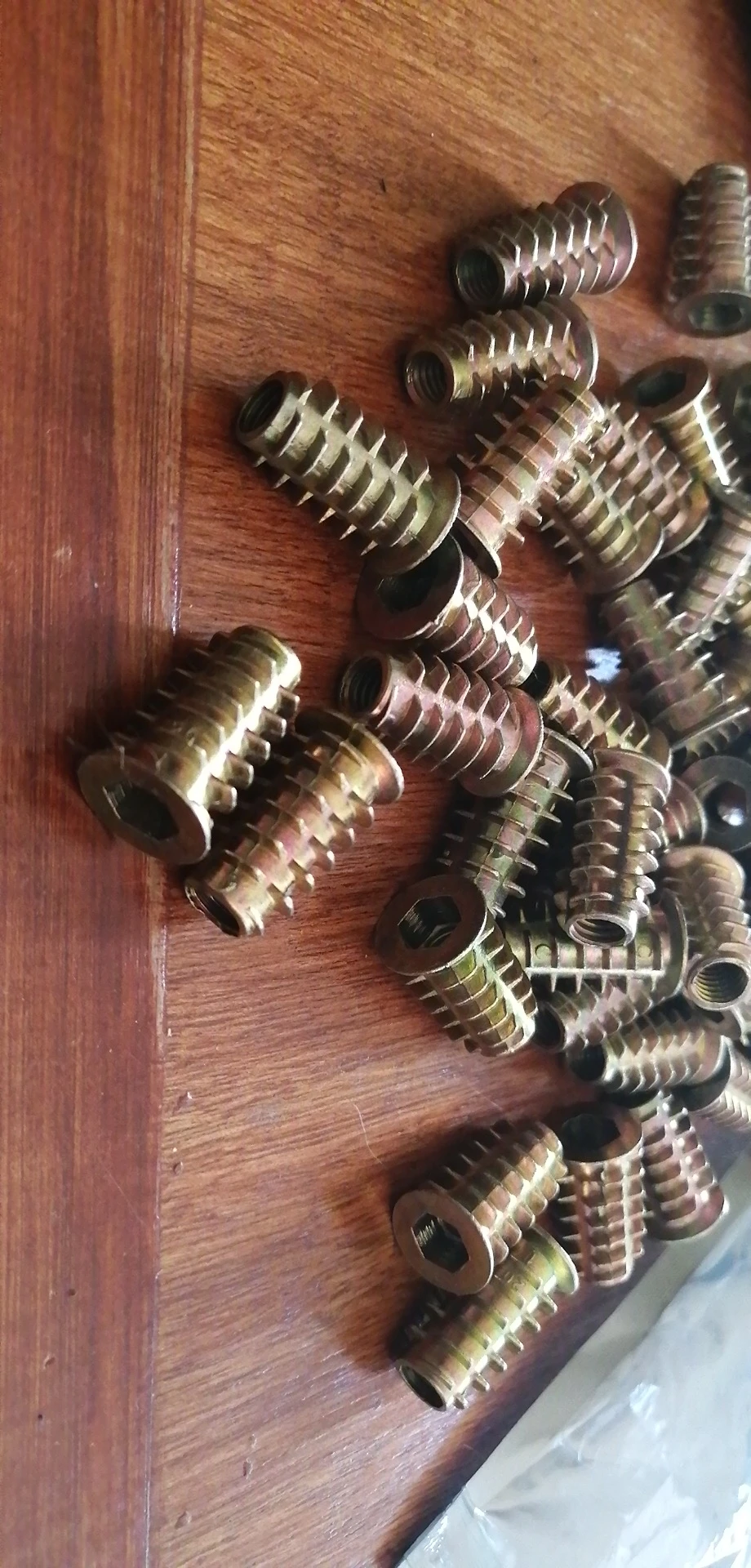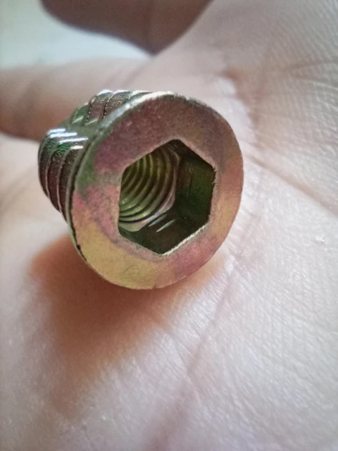 Неплохие резьбовые втулки из порошкового сплава. При сверлении в многослойную фанеру необходимо подбирать тщательно диаметр сверла, иначе при увеличении нагрузки при заворачивании срывает внутренний шестигранник. Если руки из правильного места ратут -все получится. Рекомендую!