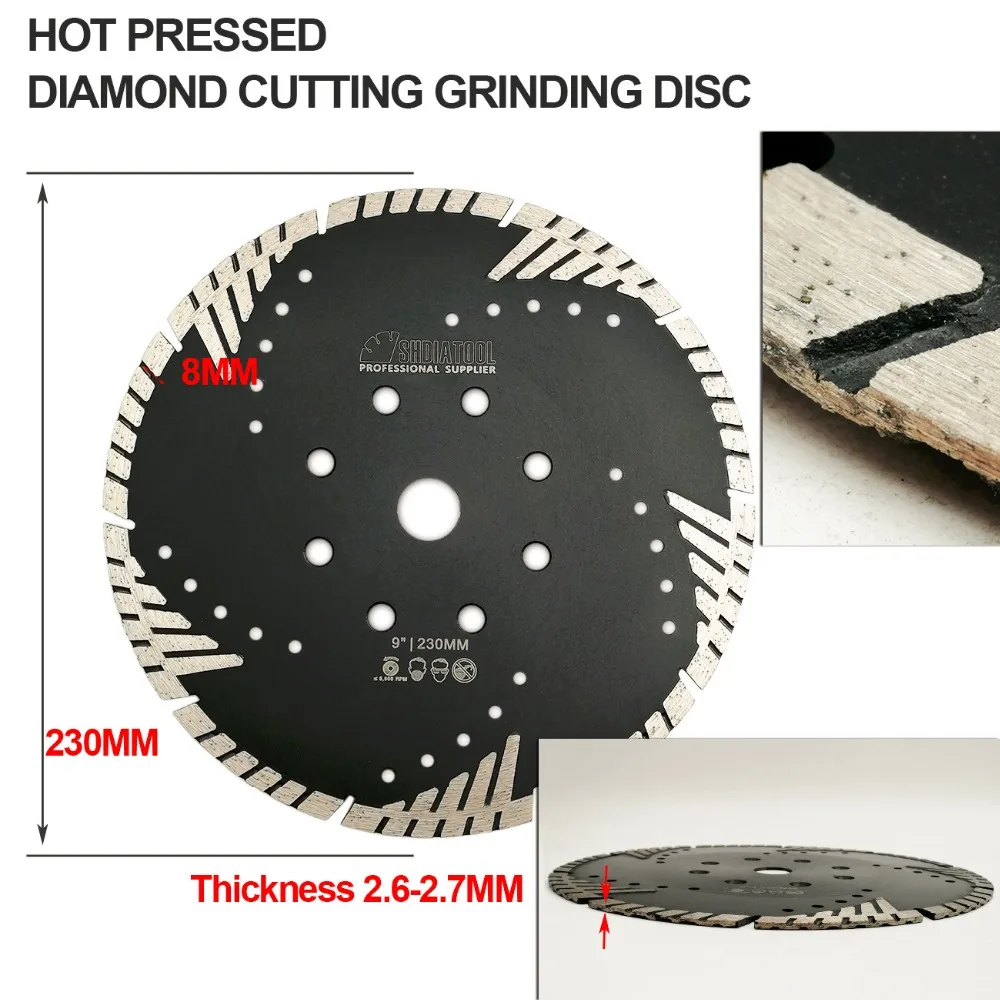 SHDIATOOL 2 шт. 230 мм горячепрессованное алмазное турбо-лезвие с косой защитой зубов бетонная плитка гранит