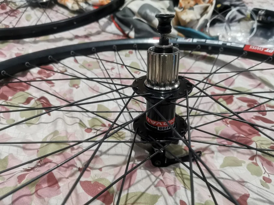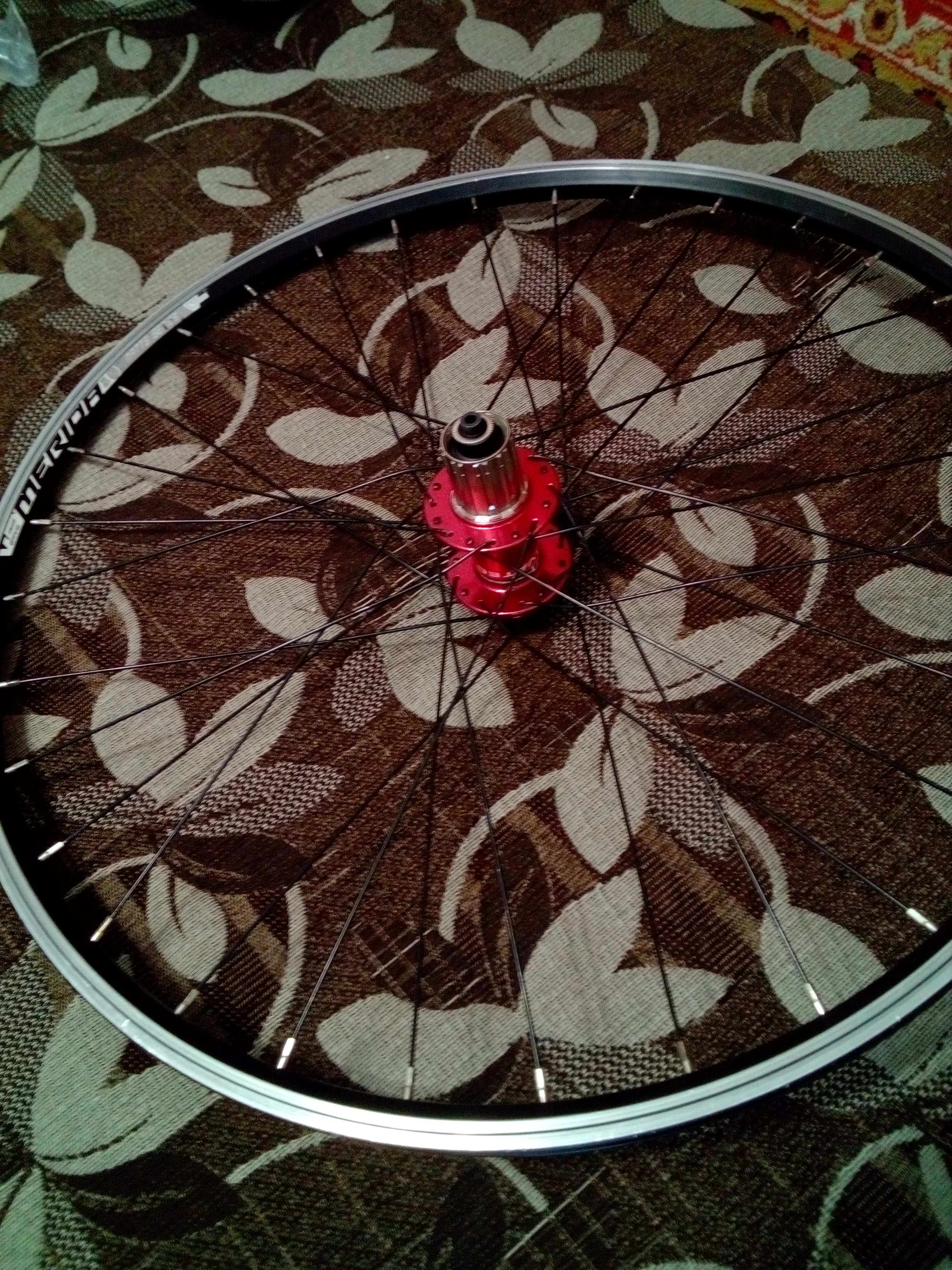Получил втулку - огонь. Спицы подошли от шимы 45 мм. Хотел новые спицы покупать. Вес чуть больше RM65. Пока собрал колесо, сейчас буду протягивать спицы и править яйца, потом восьмерки. Про ходовые испытания отпишусь позже.