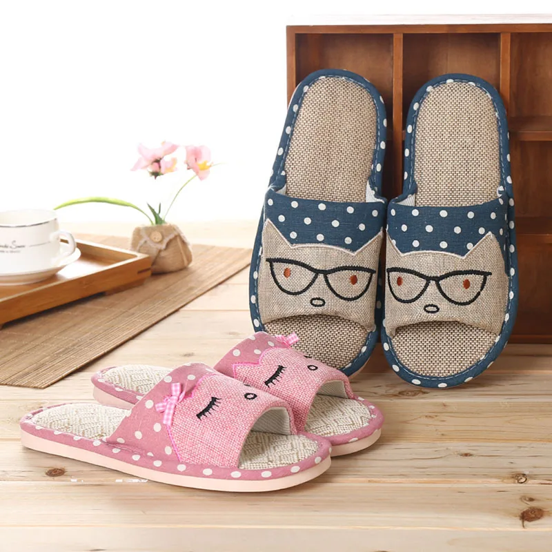 Женские ботинки, женские ботинки, новинка 2022, Стильные домашние льняные полосатые слипоны, летние Мультяшные очки, напольные Тапочки