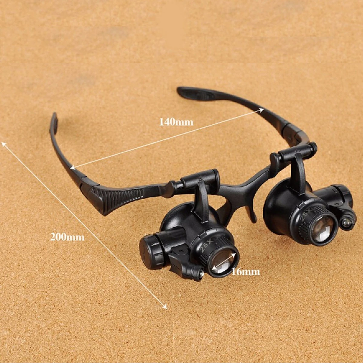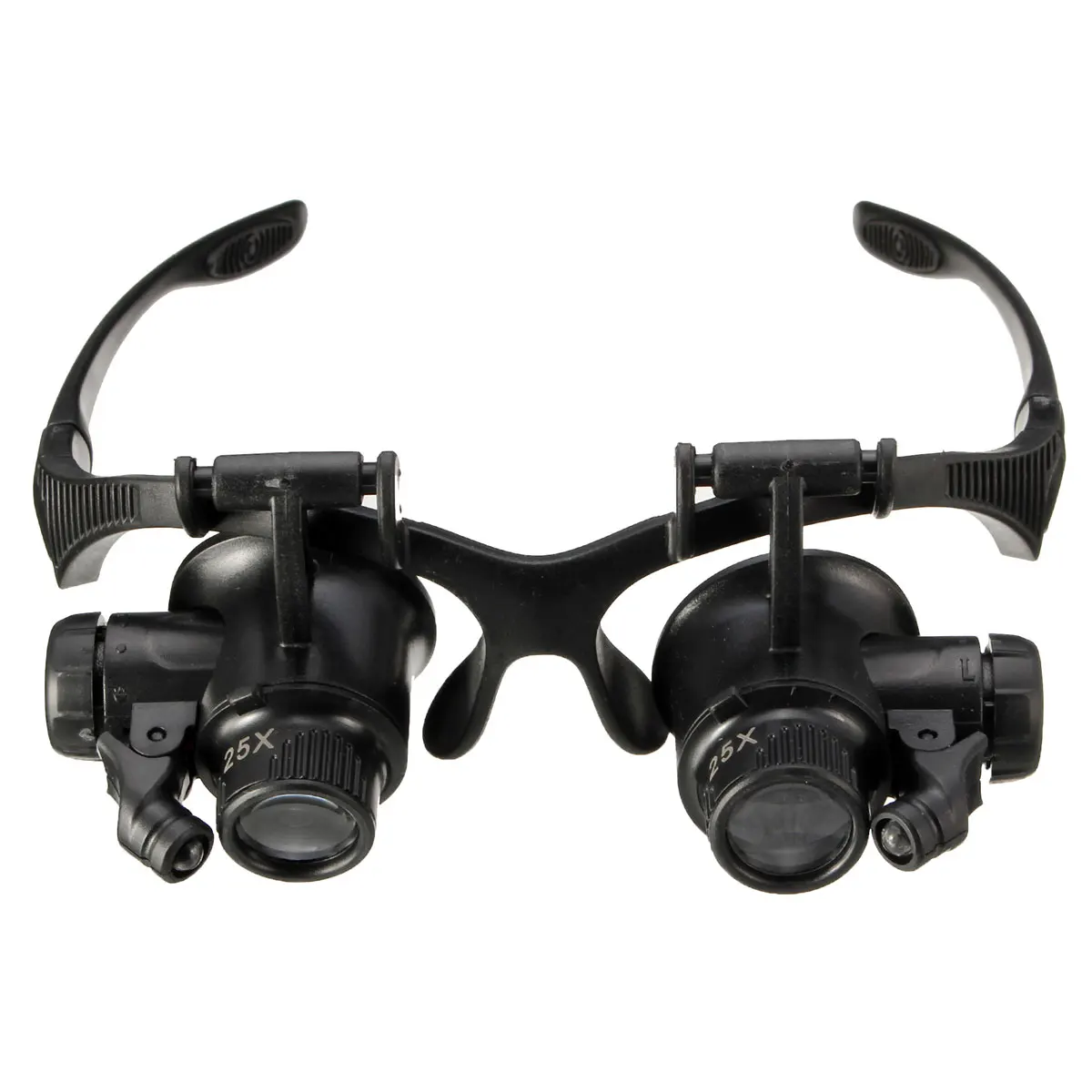 Спецификация: Цвет: черныйКоличество линз: 8 (2 шт.10X, 2 шт15X, 2 шт20X, 2 шт25X)Увеличение линз:10X, 15X, 20X, 25X Размер объектива: 15,8 ммРазмер линзы окуляра: 20 ммМатериал: оптические очки + пластикДва способа ношения: очки и ремешок для головыРасстояние наблюдения: 20-50 мм (рекомендуется 30 мм)Окружность головы: около 590 мм