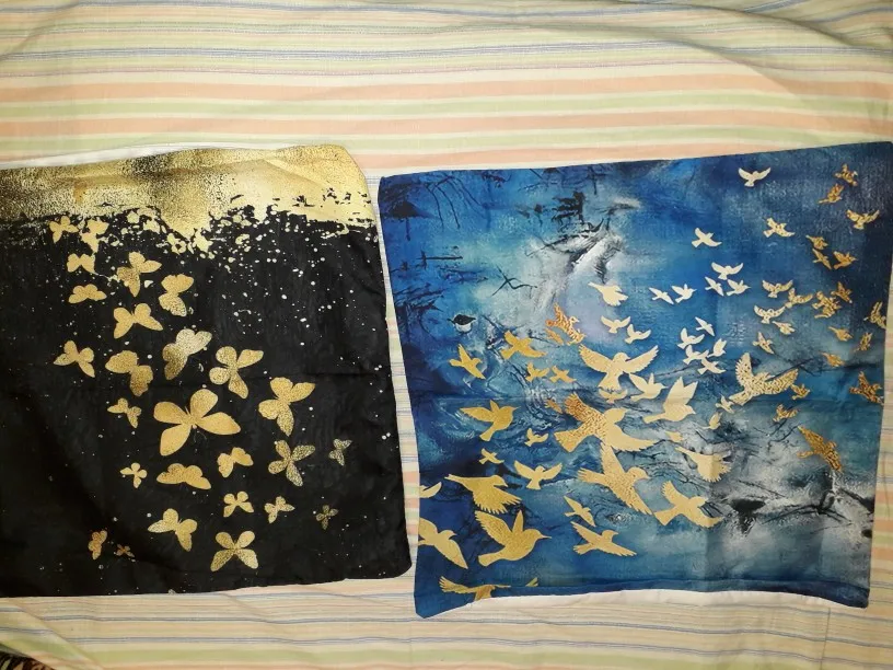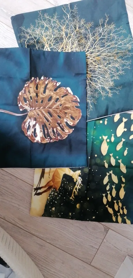 наволочка на фото красивая, но в реале выглядит гораздо проще, это не принт и не золото, как я думала, а просто ткань. скроено, сшито по-быстрому, швы ненадежные, ткань тонкая и электризуется. этой наволочкой я недовольна, это не то что я ожидала.