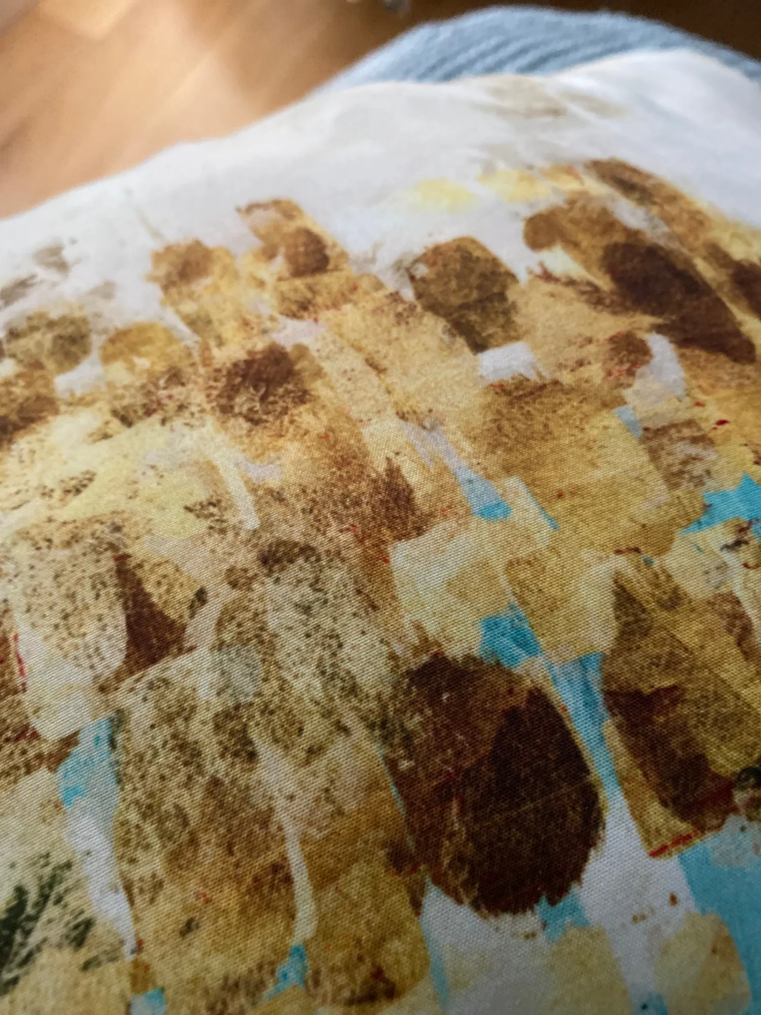 Кажется золотым, но коричневым. Но довольно красивая и тонкая ткань. Хорошо сшито, молния очень быстрая. Милый чехол