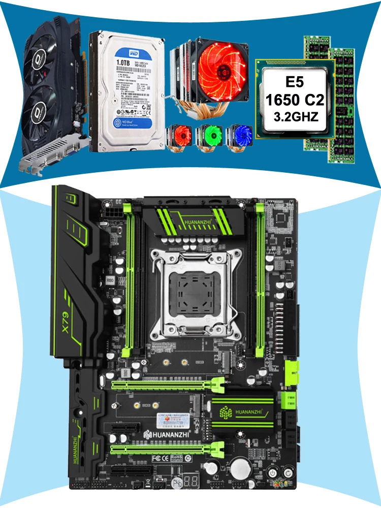 Комплект материнской платы HUANANZHI X79 2 * M.2 CPU Xeon E5 1650 3,5 ГГц 6 Трубок кулер ЦП 16 Гб ОЗУ RECC 1 ТБ HDD GTX750Ti 2G видеокарта