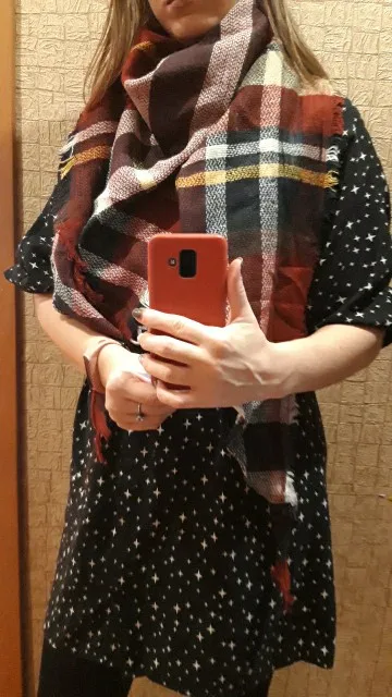 Шарф женский, кашемировый, в клетку, зимний