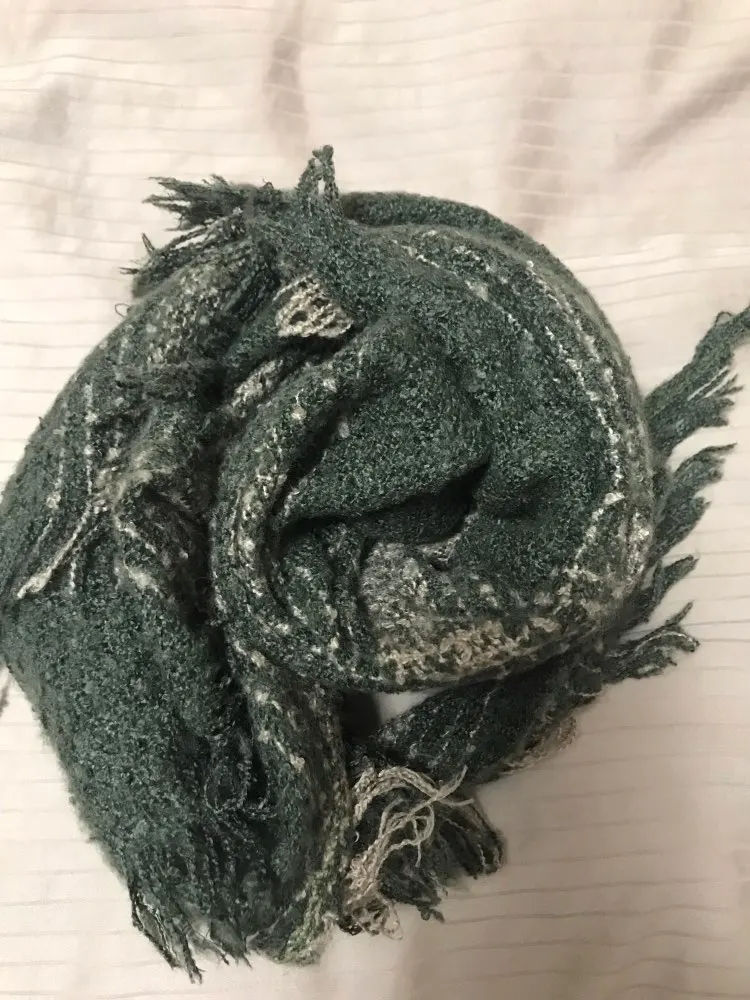 шарф теплый , но немного тонковат. но все равно греет.