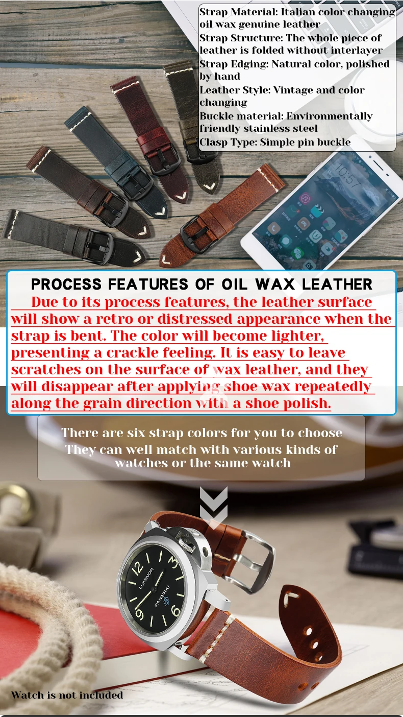 Ремешок для часов из натуральной кожи, 202224 мм, часы с винтажным ...