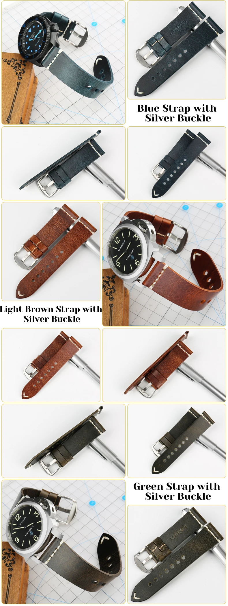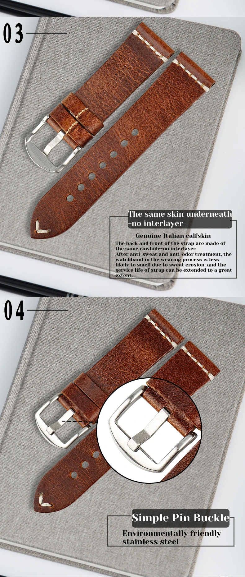 Ремешок для часов MAIKES из натуральной кожи, тонкий браслет со стальной пряжкой, изменяемый цвет, аксессуары для часов, 22 мм 24 мм