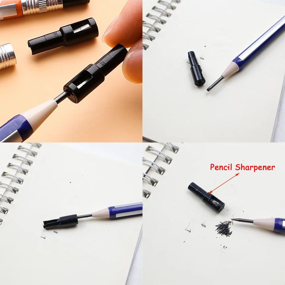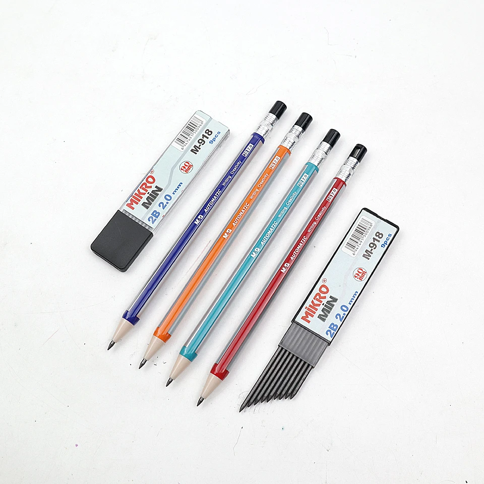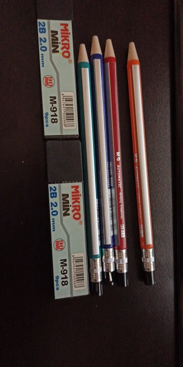 Карандашики хорошие, понравились. Все 4 исправно выдвигаются при нажатии на точилку сверху карандаша (имитация ластика). В посылке также были 2 коробочки с запасными грифелями, как и указано в описании товара. Доставка порадовала, всего 2 недели в Липецкую область.
