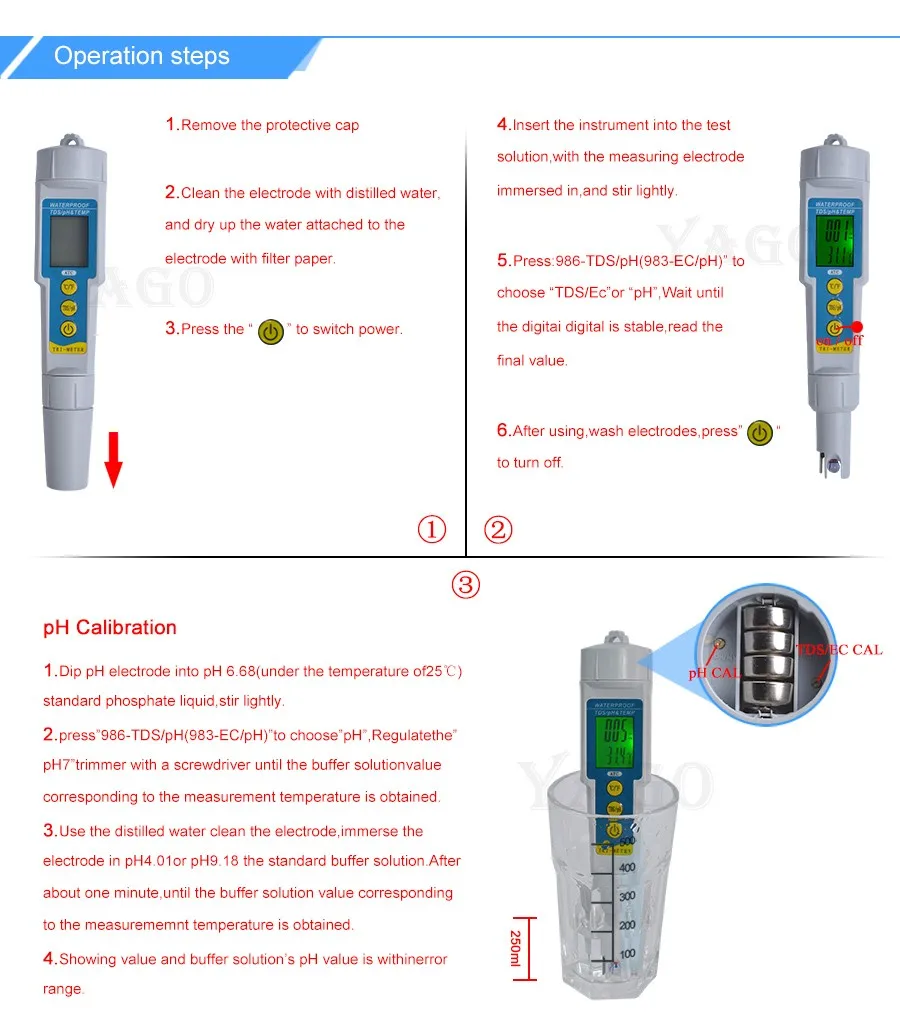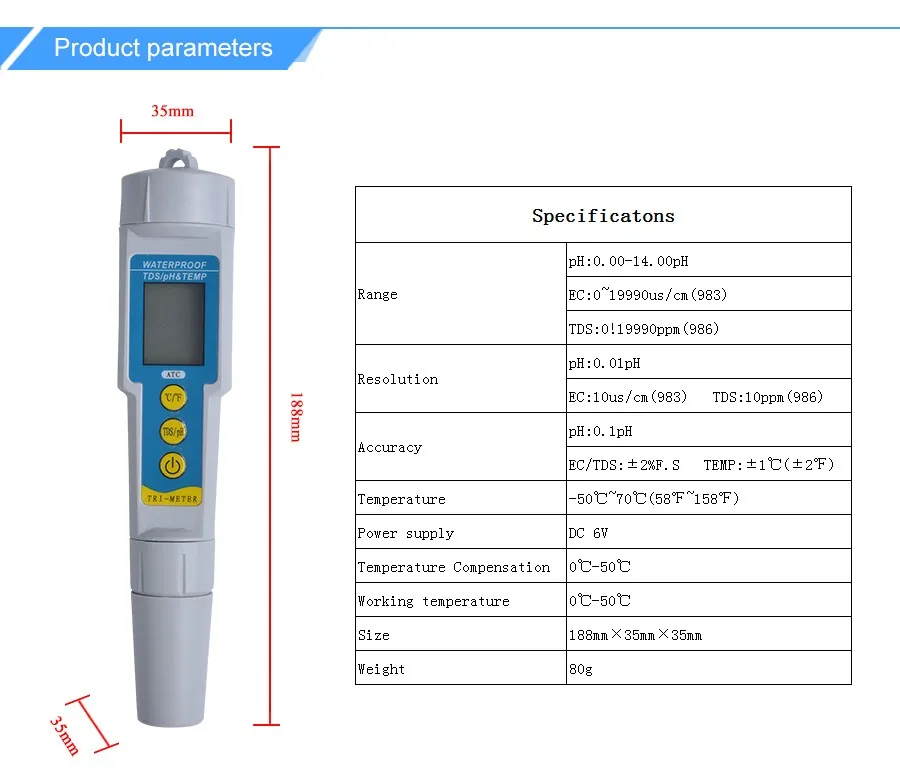 Точность: pH: ± 0.1pHTDS:± 2% f. S