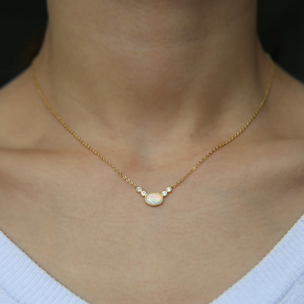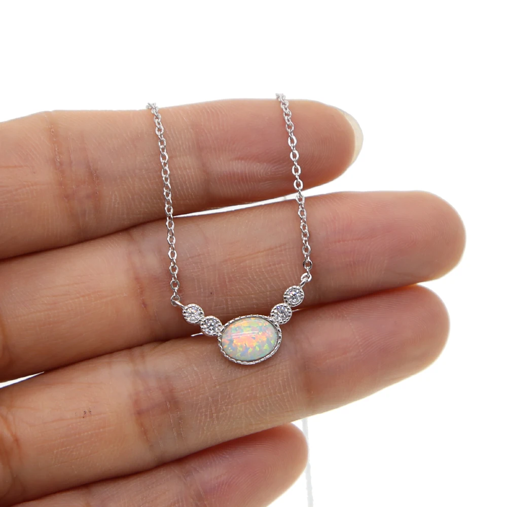 2021 Милая летняя яйцевидной формы круглые cz камень опал ожерелье 100% 925 серебряные серьги Нежный крошечные опал очарование кулон для женщин, подарок