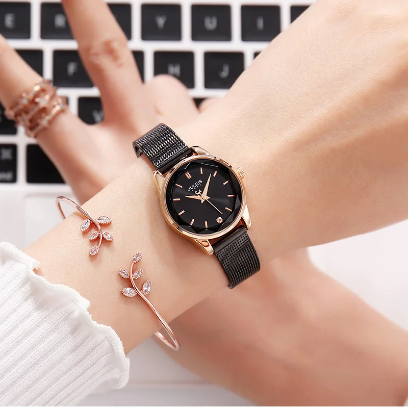Часы Top Julius женские, модные деловые из нержавеющей стали с браслетом MIYOTA, Подарочная коробка для девушек на день рождения, День святого Валентина