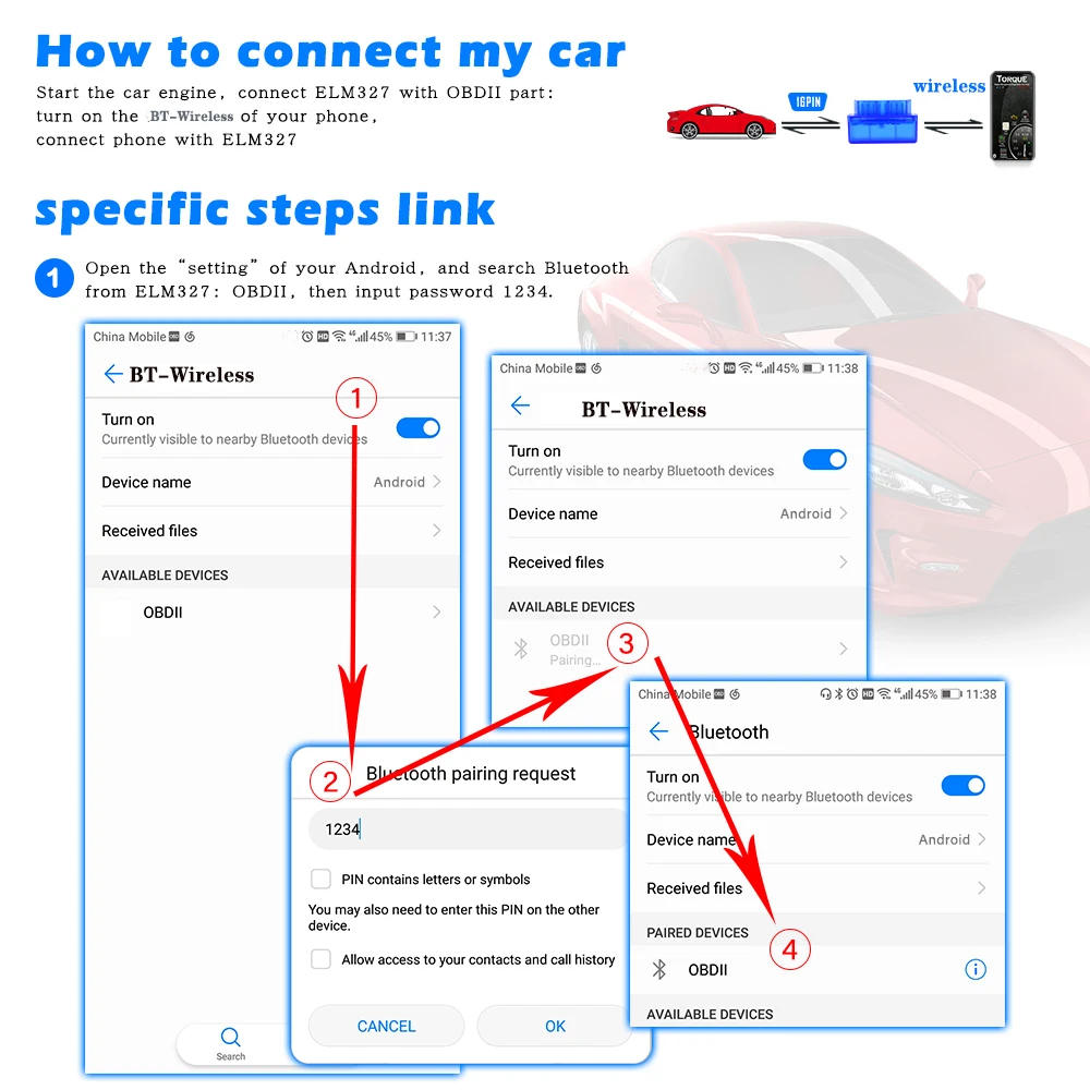 Беспроводные функции MINI ELM327:
