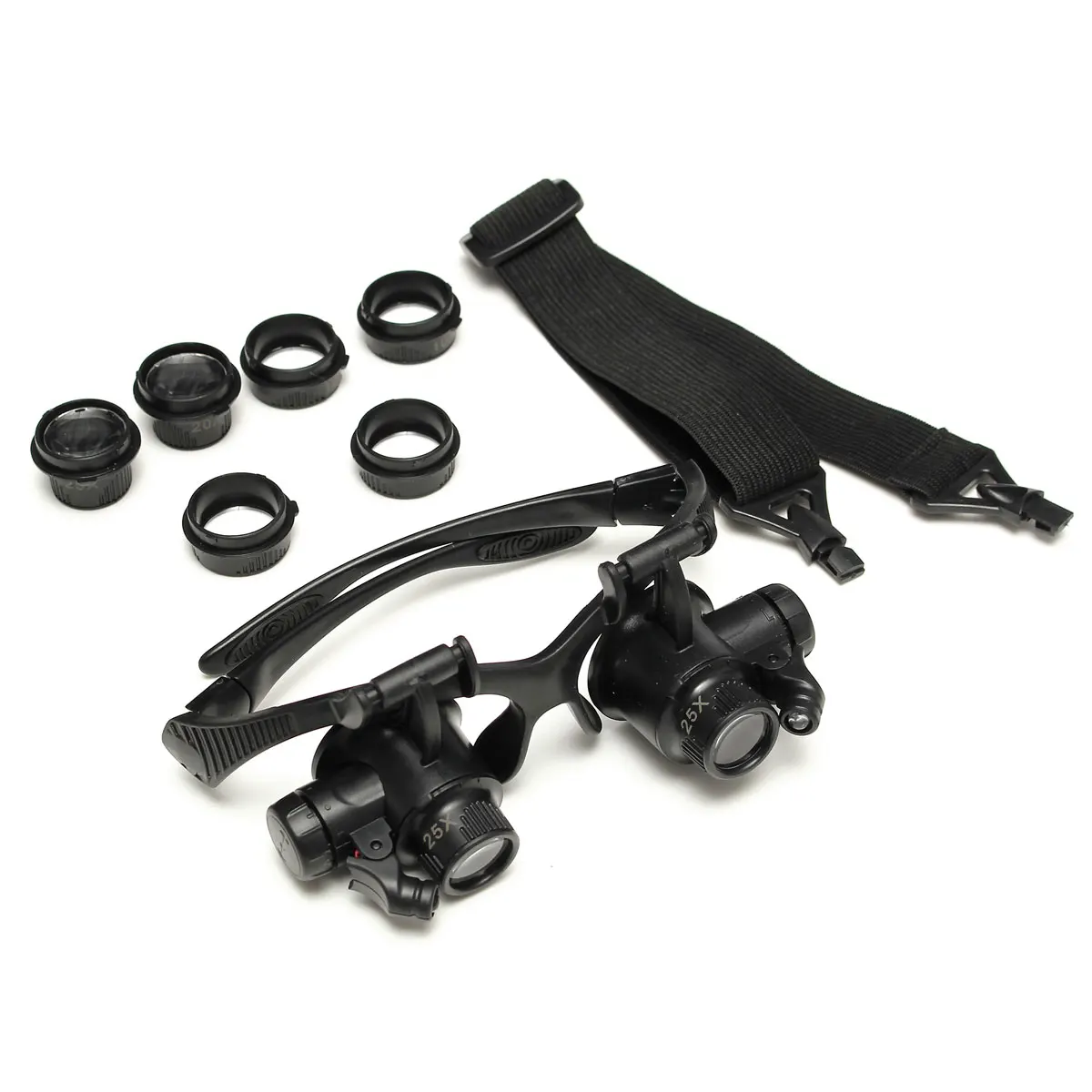 Инструмент для ремонта часов свободные руки, 10X 15X 20X 25X, очки, светодиодная лампа, лупа, лупа для ювелирных изделий, для поддержания, Замена 8 шт.