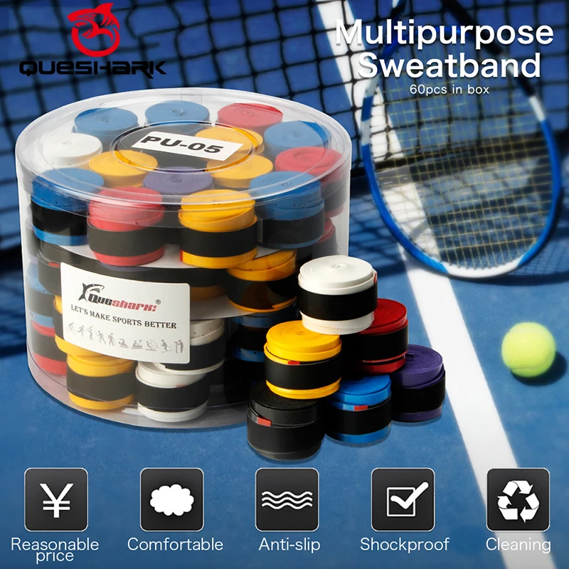 QUESHARK Pro 60 шт., теннисные ракетки с покрытием, противоскользящие впитывающие пот ленты для бадминтона, нарукавники для тенниса, удочки, свитшоты