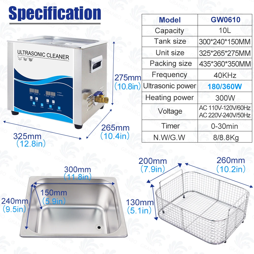 Встроенные мощные преобразователиМожет повысить мощность ультразвука и сделать превосходный результат очистки. ЭтоИспользование цифровой программыВ ультразвуковом очистителе для управления блоком, в зависимости от количества и состояния предметов, которые должны быть очищены, чтобы выбрать время рабочего цикла. В результате этоБолее удобно и эффективноНарезку деталей, чем ручная стирка, пароочистители, очистки струей воды под высоким давлением или других машин.