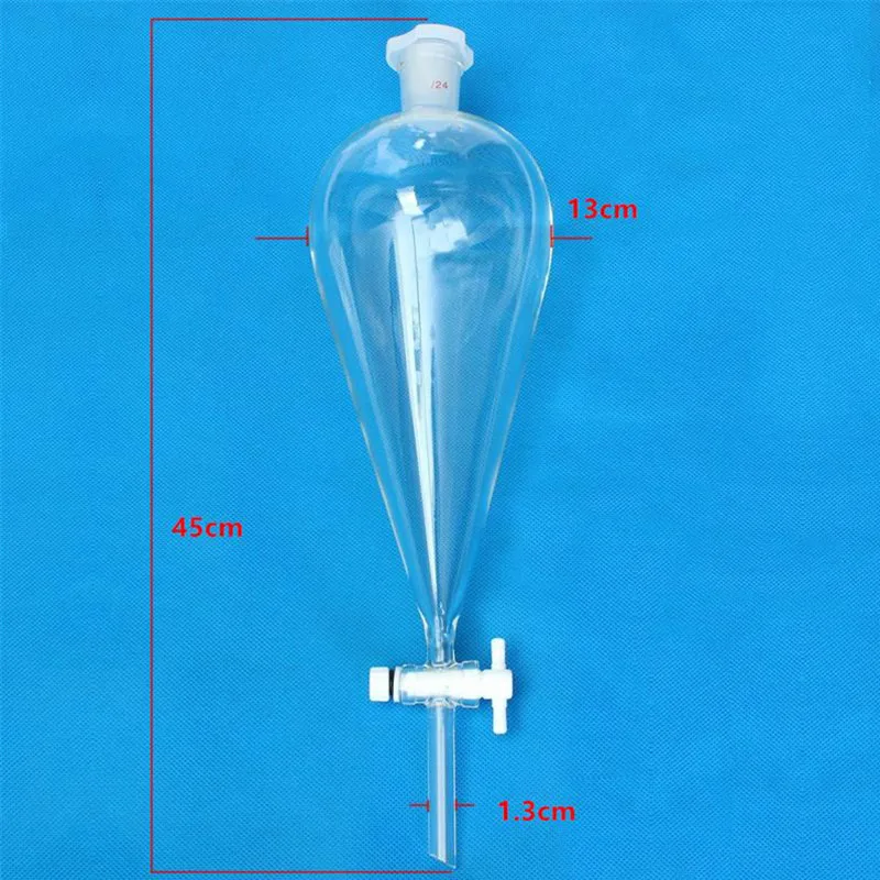 2 шт.упак. 1000ml стекло в форме груши сепарационная Воронка с ПТФЭ заглушкой, лабораторные принадлежности, школьные принадлежности для химической лаборатории