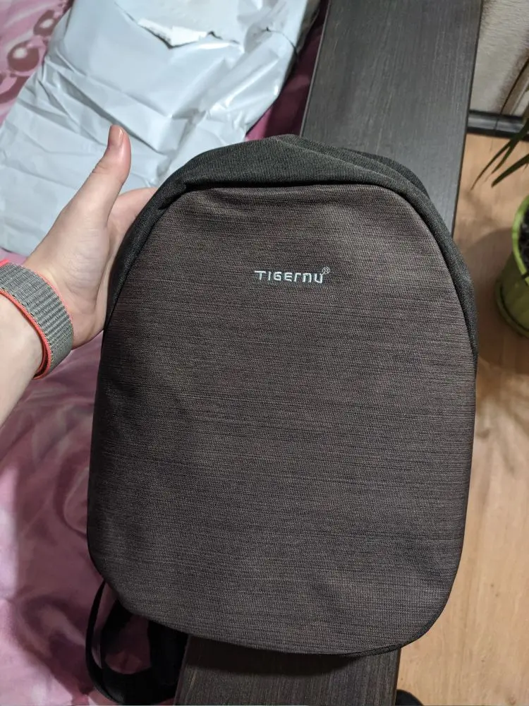Отличный городской рюкзак. Несмотря на свои небольшие размеры, он очень вместительный. У меня есть еще 2 рюкзаказа такого плана от tigernu, по габаритам они почти одинаковые, но этот внутри попросторнее. Даже чуть больше в него поместилось вещей. Качество фурнитуры отличное, материал очень приятный. Надеюсь, что справится со своими функциями и не промокнет.Доставка до СПб 7 дней. Курьер принес посылочку на дом. Спасибо продавцу.