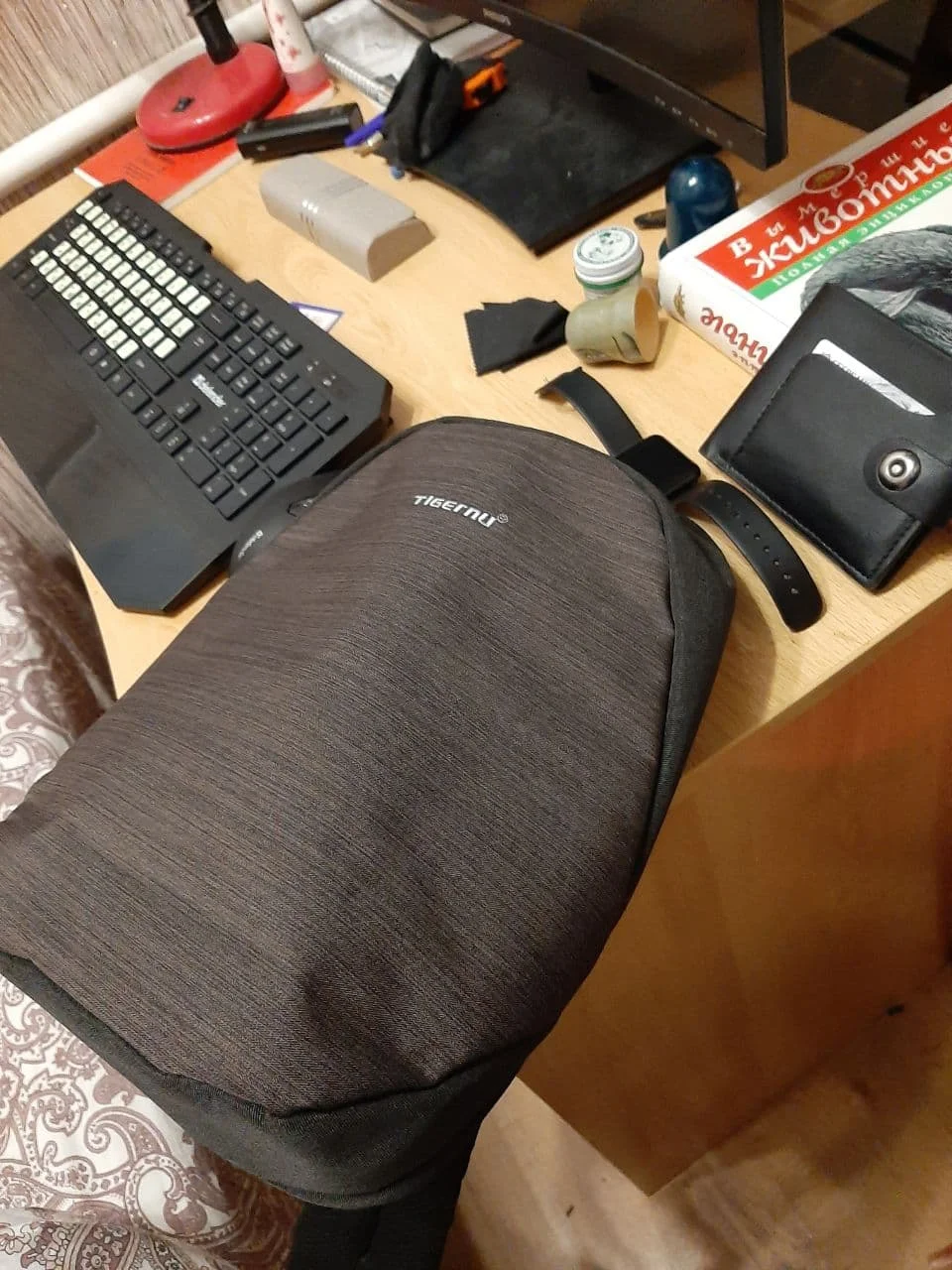 Рюкзак приехал быстро,доставлен до квартиры курьером.Рюкзак,как всегда от Tigernu,отличного качества,функционален и удобный в ношении.Единственное можно было хвостики на бегунках покрыть резиновым напылением,чтобы не гремели в процессе ношения рюкзака.На фото есть сравнение с рюкзаком от Xiaomi.