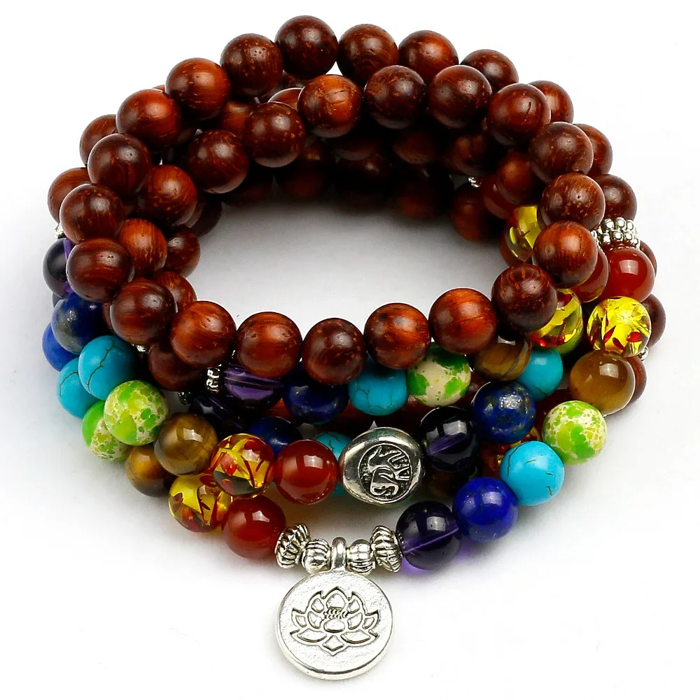 Браслет с 7 чакрами, мужские натуральные деревянные лечебные балансирующие бусины, молитва рейки Будды, женские Украшения