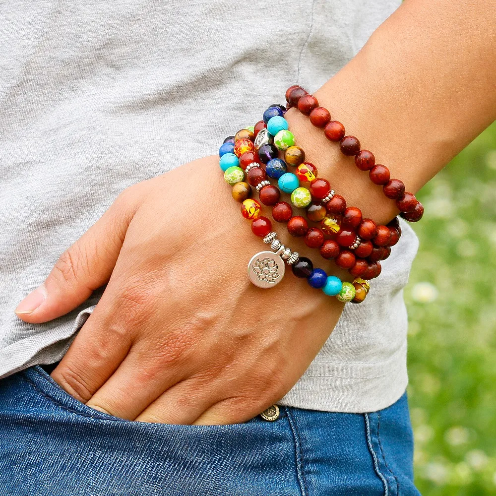 108 Mala Beads браслеты из натурального камня, китайские ювелирные ...