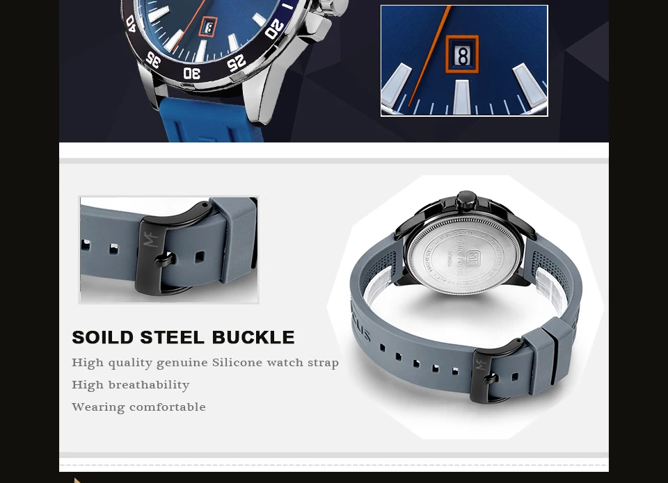 Часы мужские Спортивные кварцевые в стиле милитари, с календарем и датой