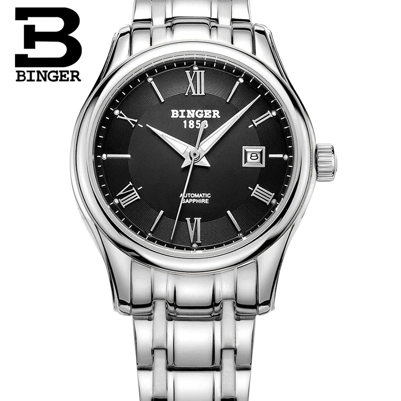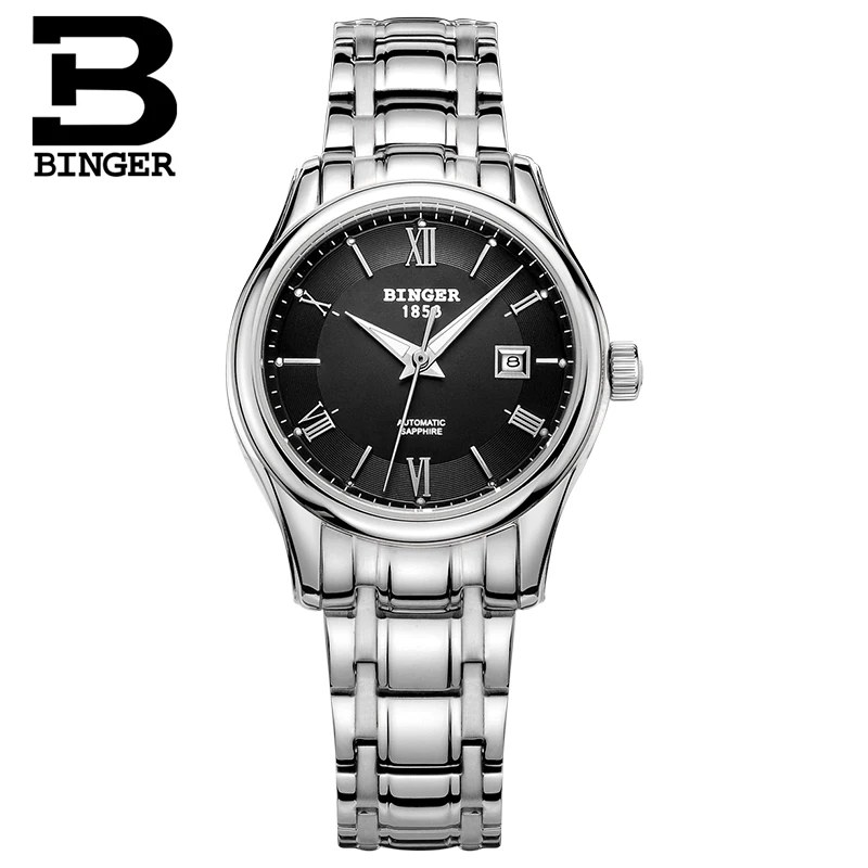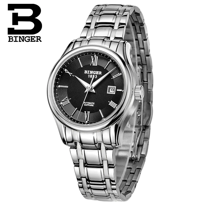 Швейцарские женские часы BINGER, роскошные Брендовые женские механические наручные часы с сапфировым стеклом из нержавеющей стали, женские часы B5002L-2