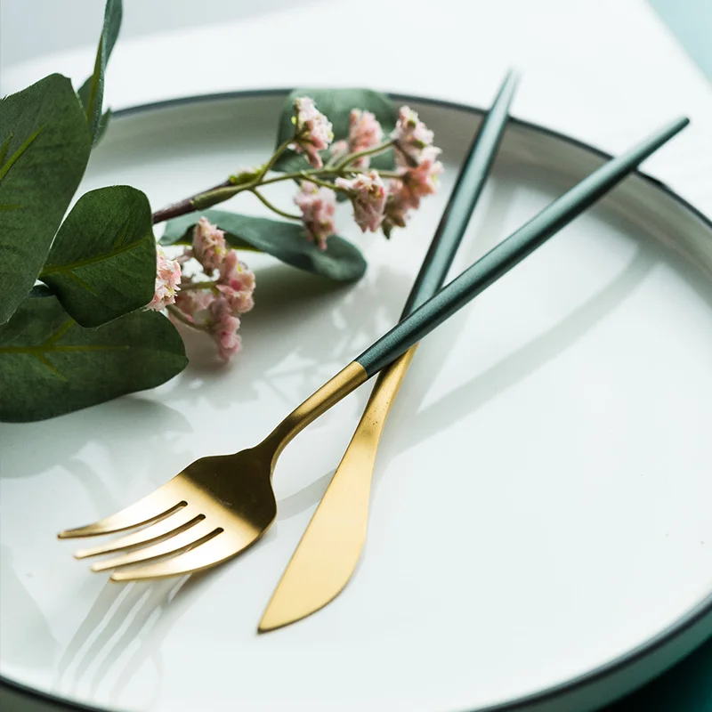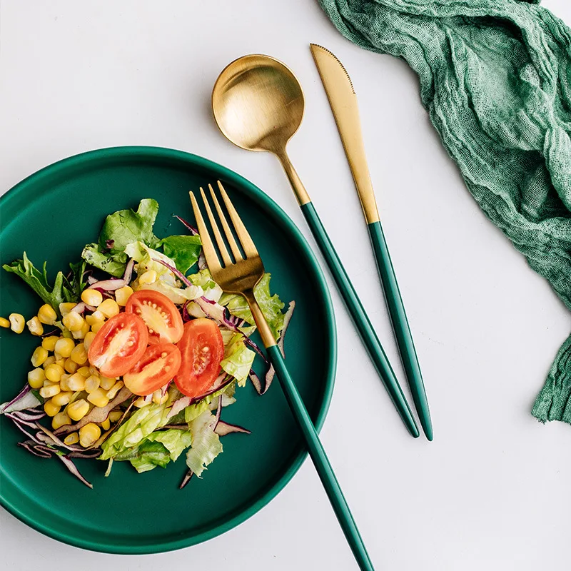 Набор столовых приборов KuBac набор серебряных изделий, 24 шт., 1810, из нержавеющей стали, роскошный, зеленый и матовый, золотой, для свадебных торжеств