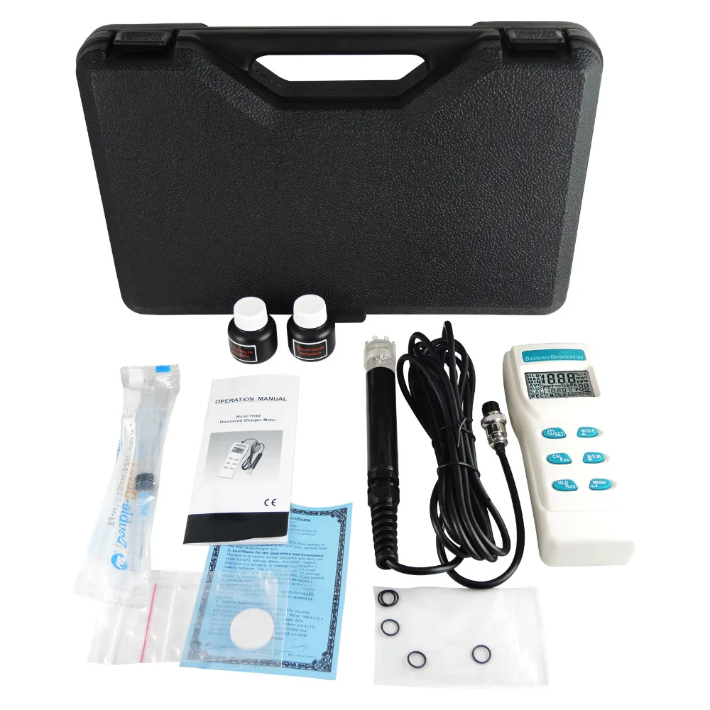 В комплект входит:1 х Измеритель Растворенного Кислорода1 зонд с кабелем 333 см4 батарейки типа AAA бесплатно5 x тефлоновая мембрана5 х уплотнительных колец2 сменных электролитных раствора1 x шприц (используется для заполнения электролита в D.O. Электрод)Руководство по эксплуатации на английском языке1 х Прочный и защитный чехол для переноскиОпционально (не входит в комплект)