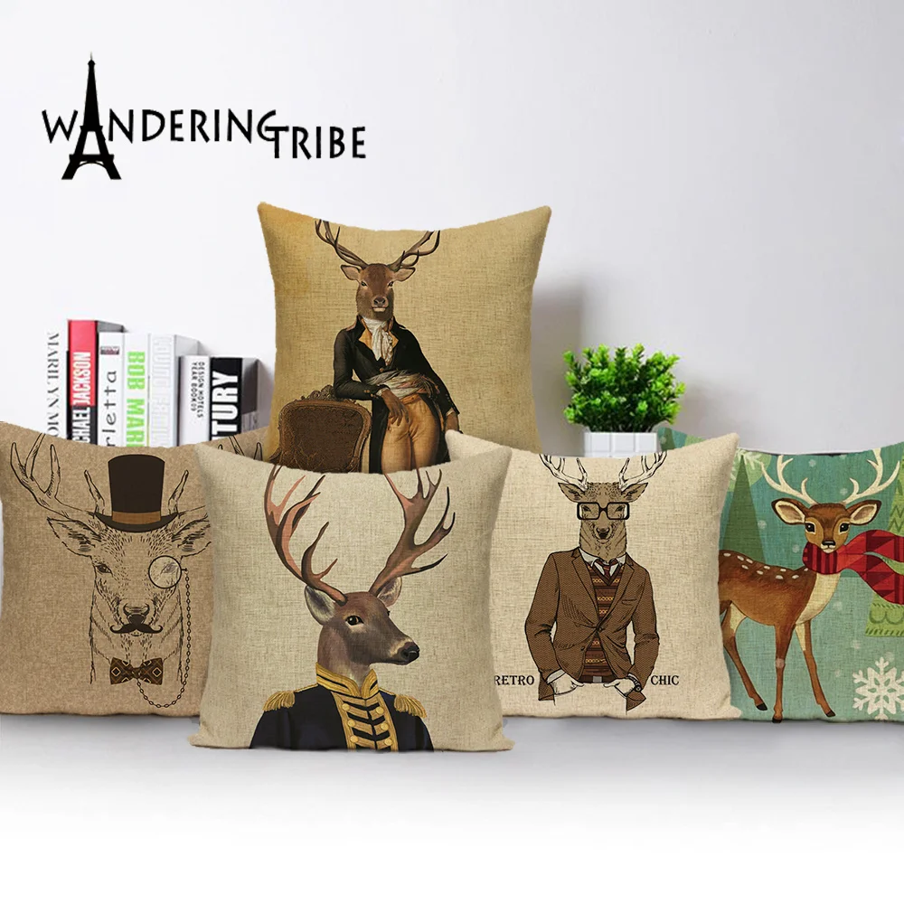 Горячая Распродажа, нордическая Подушка с лосем, наволочки, деревенская Подушка, изысканная наволочка с изображением оленя, большой льняной домашний декор, подушки с изображением животных, чехлы