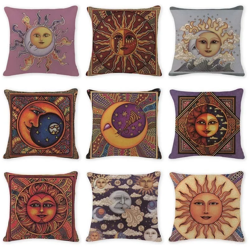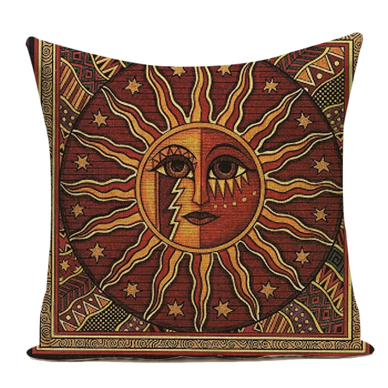 Простые Чехлы для подушек, наволочка для подушки с рисунком солнца, прямоугольная хлопковая льняная наволочка для йоги с большим полом, наволочка с рисунком в деревенском стиле