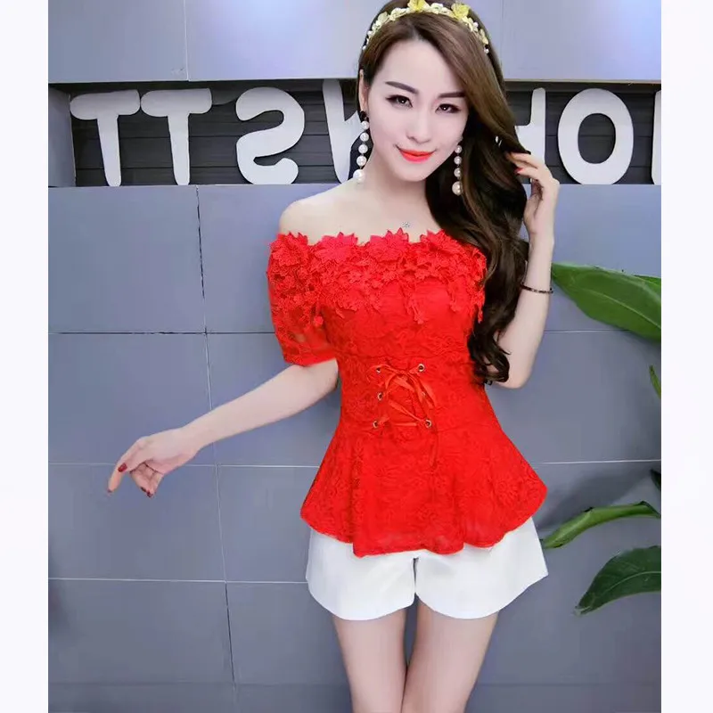 Рубашка женская кружевная с цветочным принтом, милый галстук, с коротким рукавом, с вырезом-лодочкой, с открытой спиной, AB831, весна-лето 2018