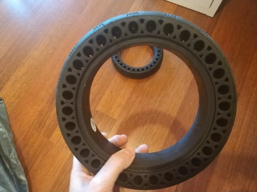 Товар пришел довольно быстро. Надеть самостоятельно покрышки не удалось, даже после варки в 15 минут и с мылом. Пришлось отдавать на шиномонтаж, где они тоже их варили и взяли с меня 600р.)) Они конечно же жесткие. По тротуарной плитке на скорости от 15-20 км/ч ездить уже некомфортно, из-за сильно вибрации ты ничего не видишь. Если чуть-чуть привстать на носочки, эти вибрации гасятся ;) Ну и чуток снизилась максимальная скорость