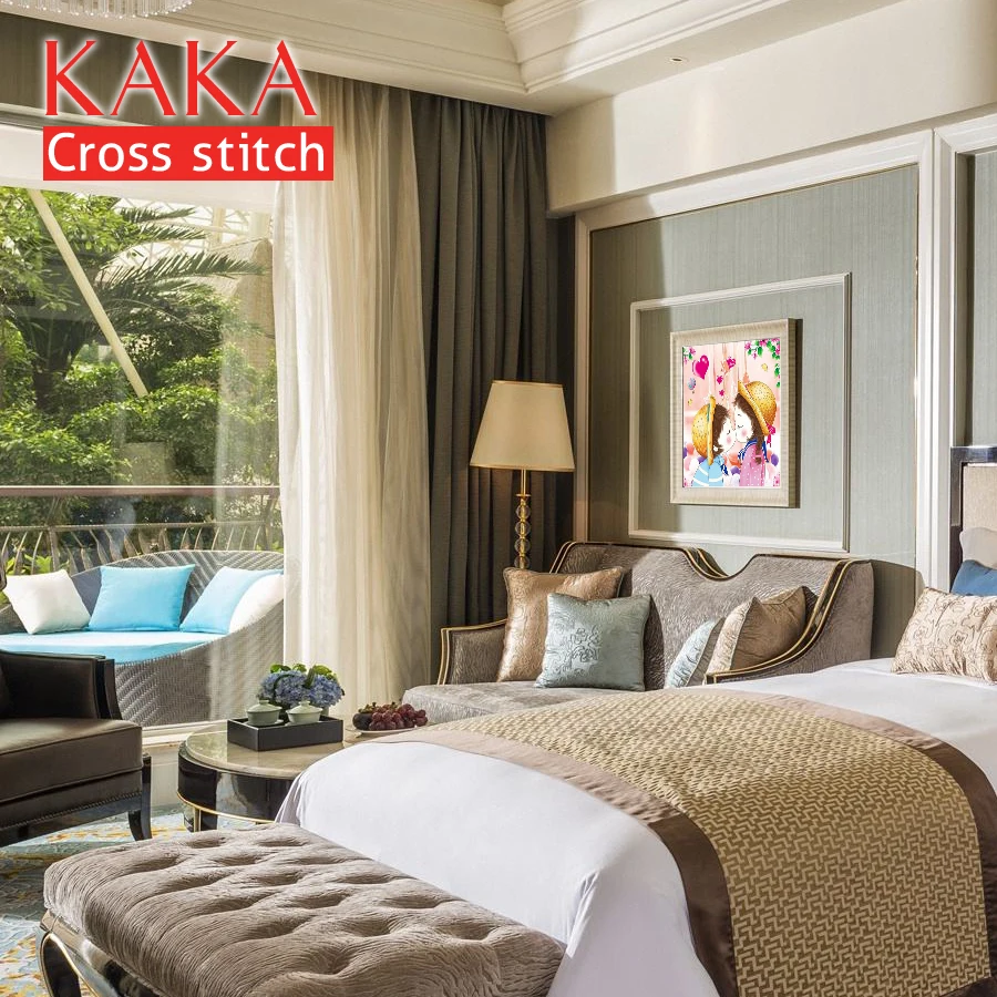 Наборы для вышивки крестиком KAKA, наборы для вышивки 5D для детей и влюбленных с напечатанным рисунком, холст 11CT, картина для домашнего декора