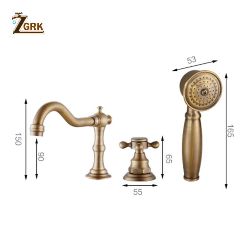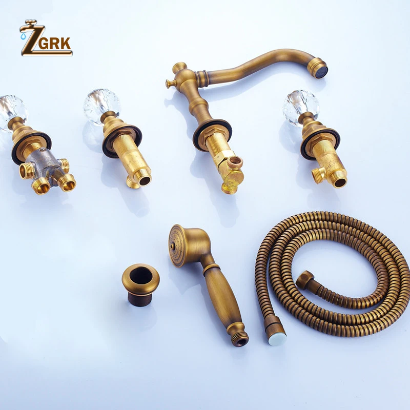 Смесители для раковины ZGRK, античный латунный Смеситель для ванны с 5 отверстиями, ручной душ, широкий смеситель для ванной комнаты, Набор смесителей для воды