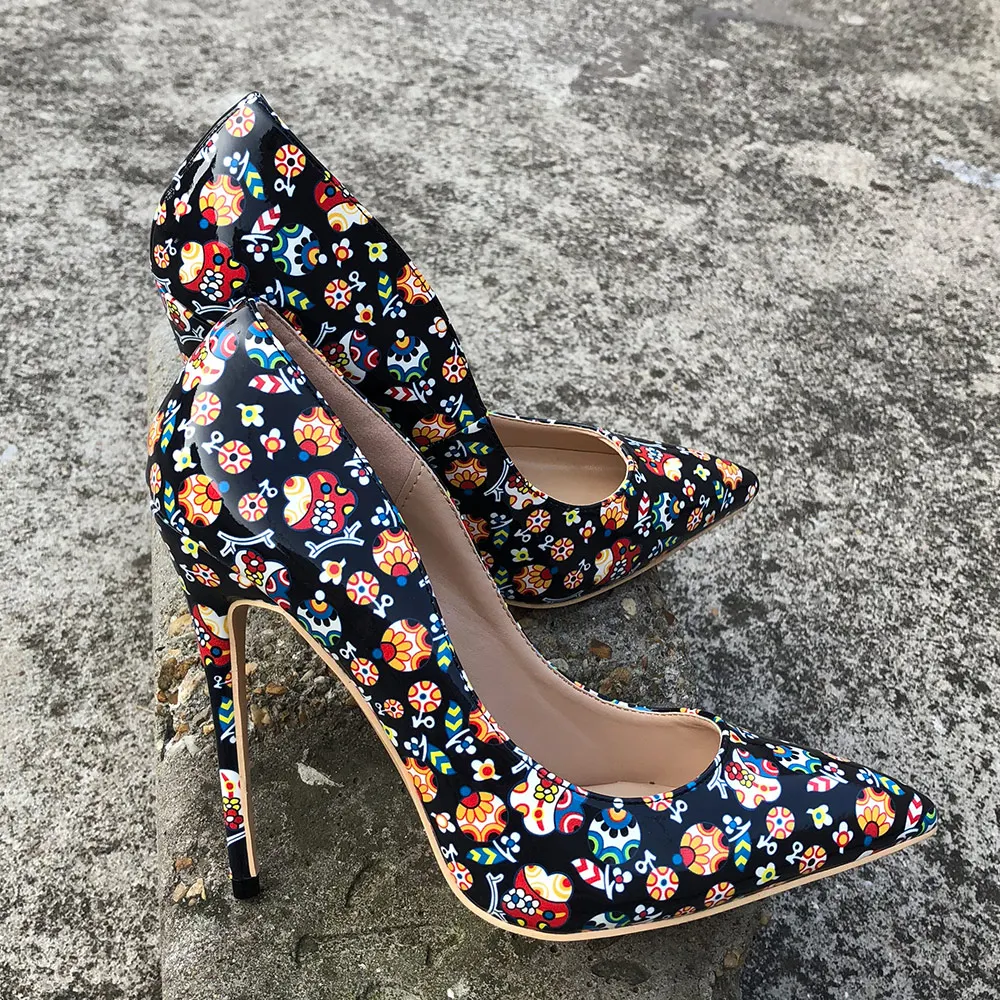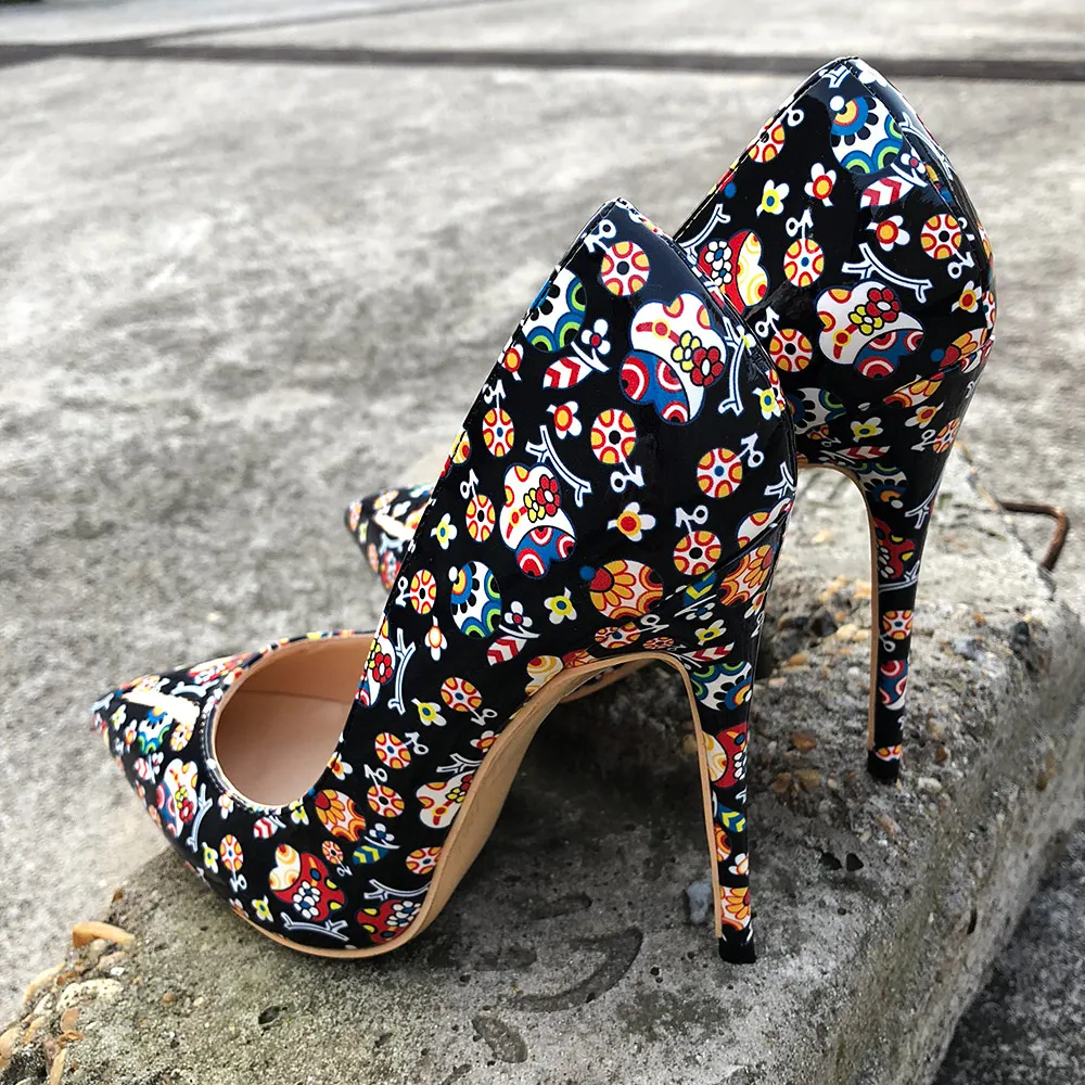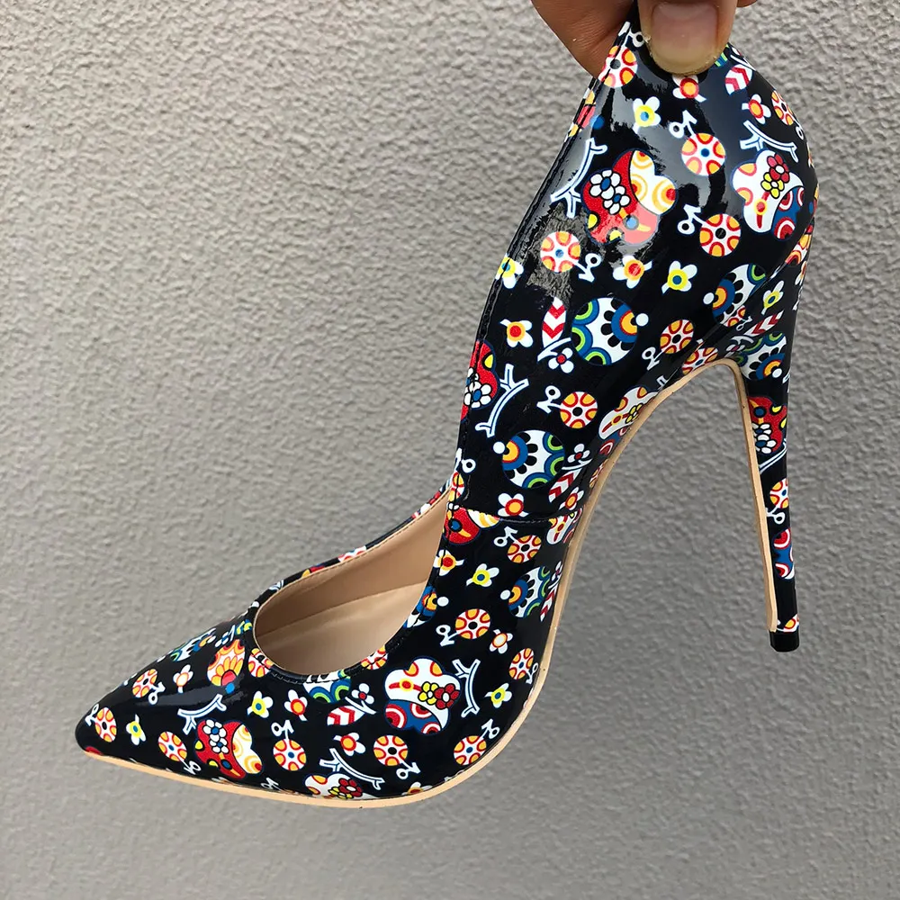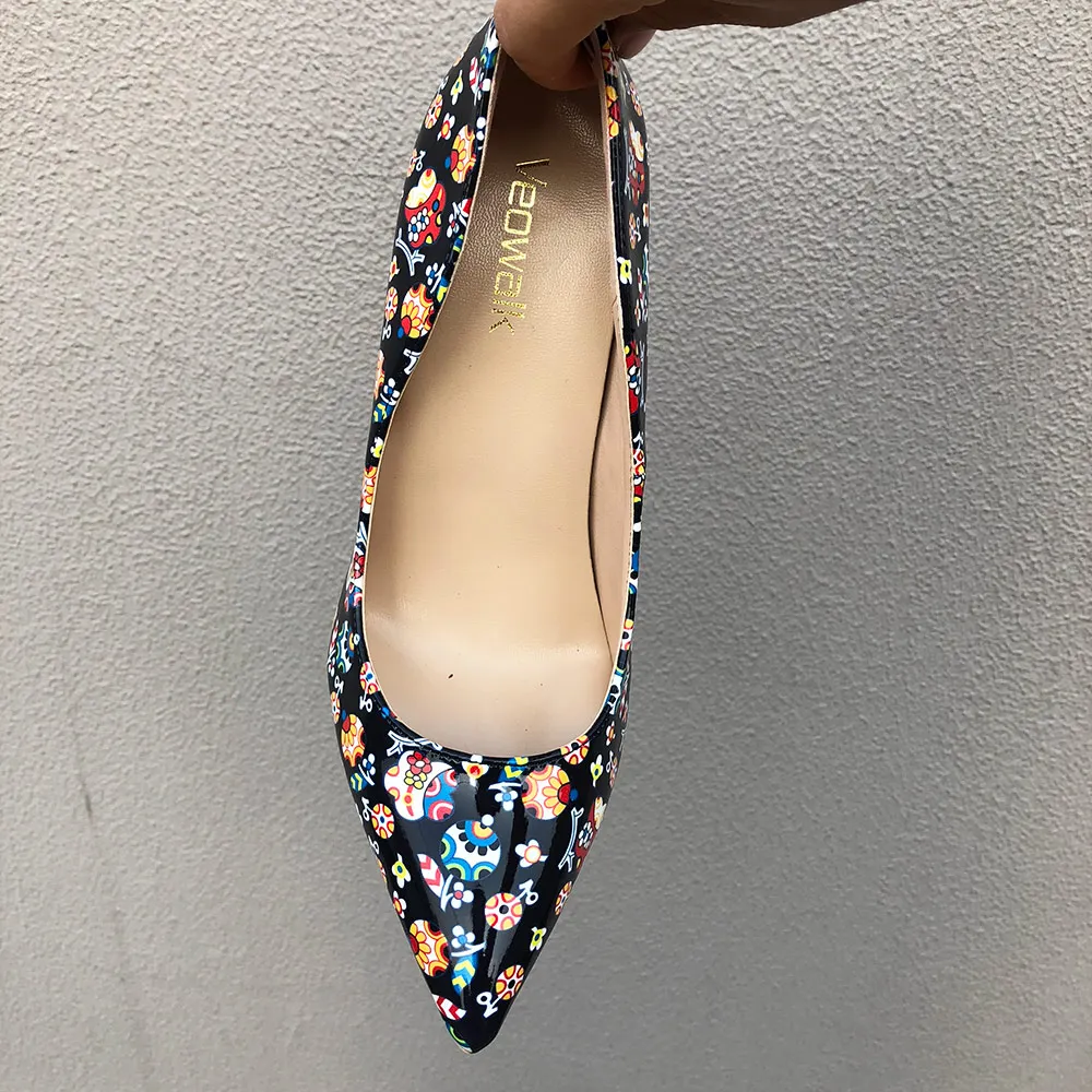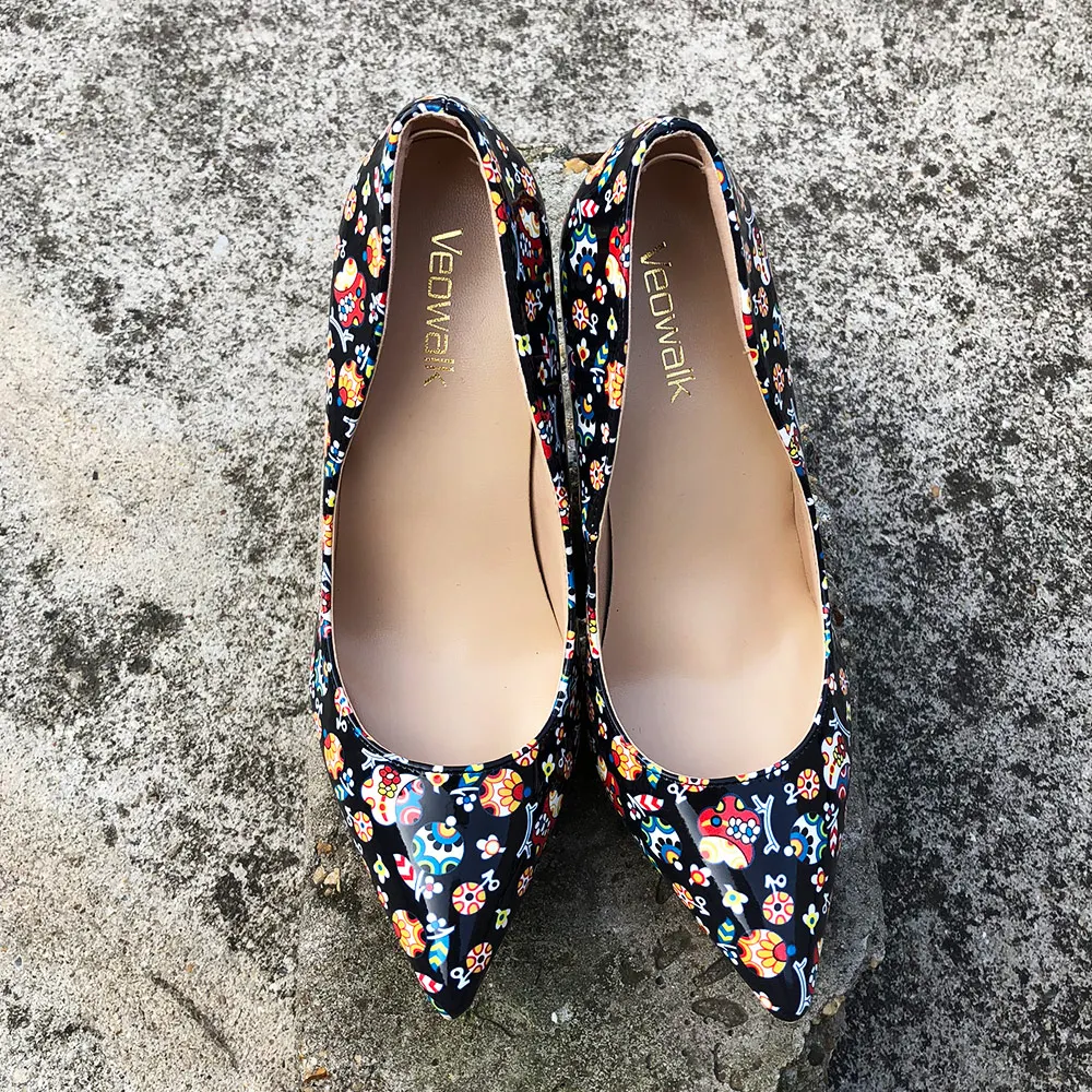 Veowalk, черные красочные женские туфли-лодочки с граффити, пикантные женские туфли на высоком каблуке для свадебной вечеринки, женские туфли-лодочки на шпильках, принимаются заказы
