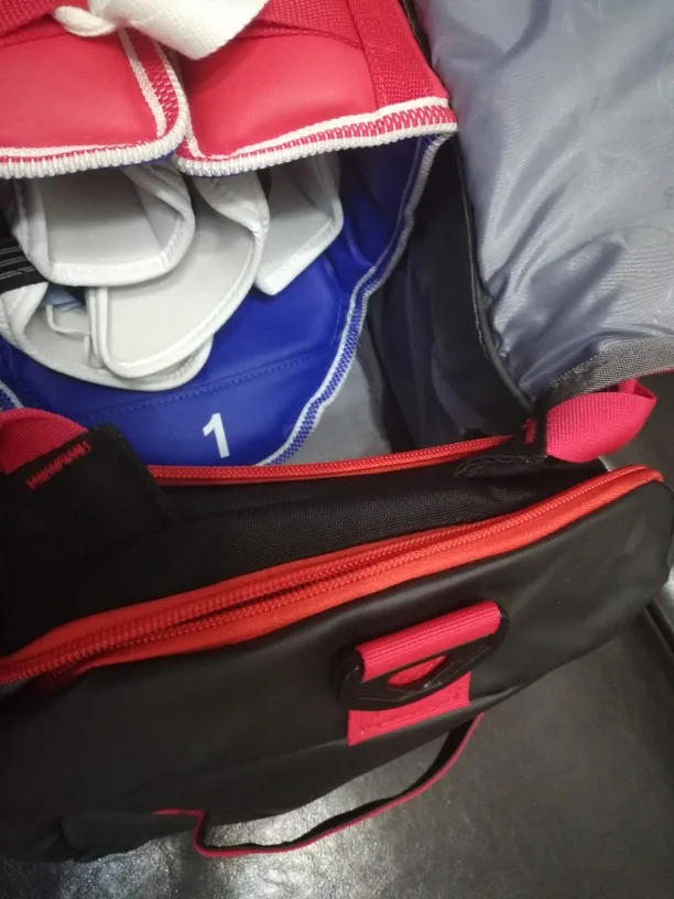 сумка отличная. Не смотря на визуально не большие размеры очень вместительная. обувь, перчатки, накладки на ноги, форма и большое полотенца влезает без проблем. удобна в переноске. рекомендую!)