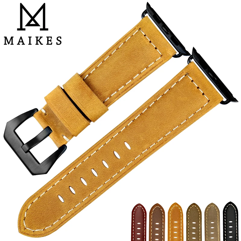 Ремешок MAIKES из натуральной коровьей кожи для Apple Watch 44 мм 45 мм 42 мм 41 мм 40 мм серия 7 SE 6 5 4 3 iWatch, ремешок для часов