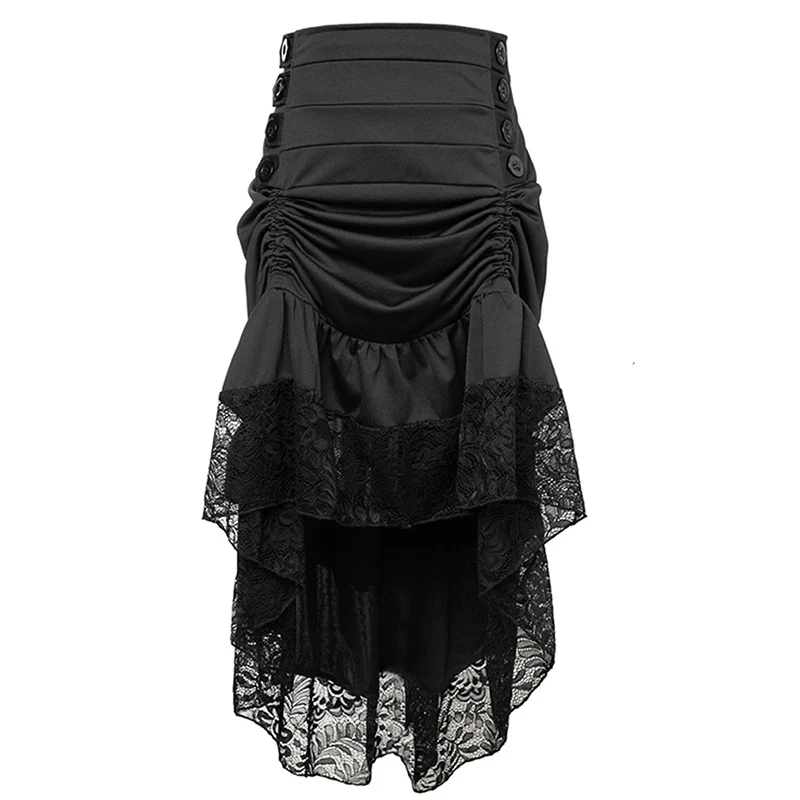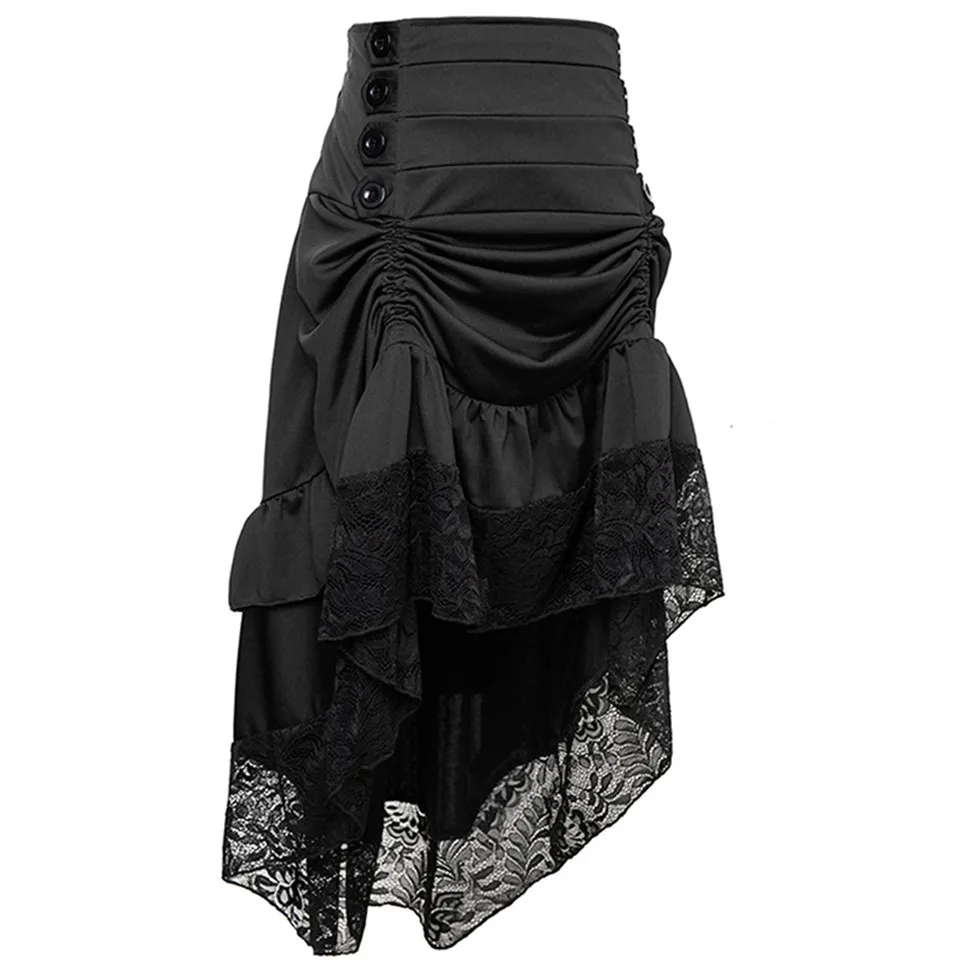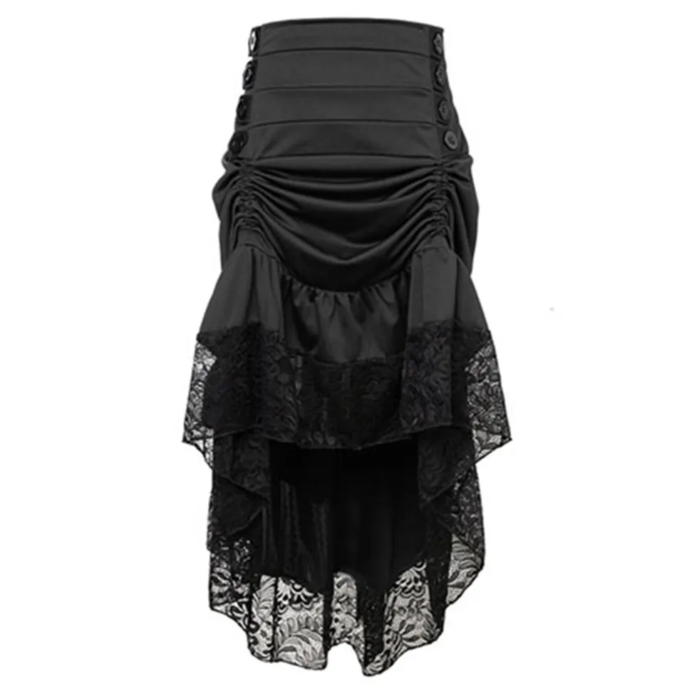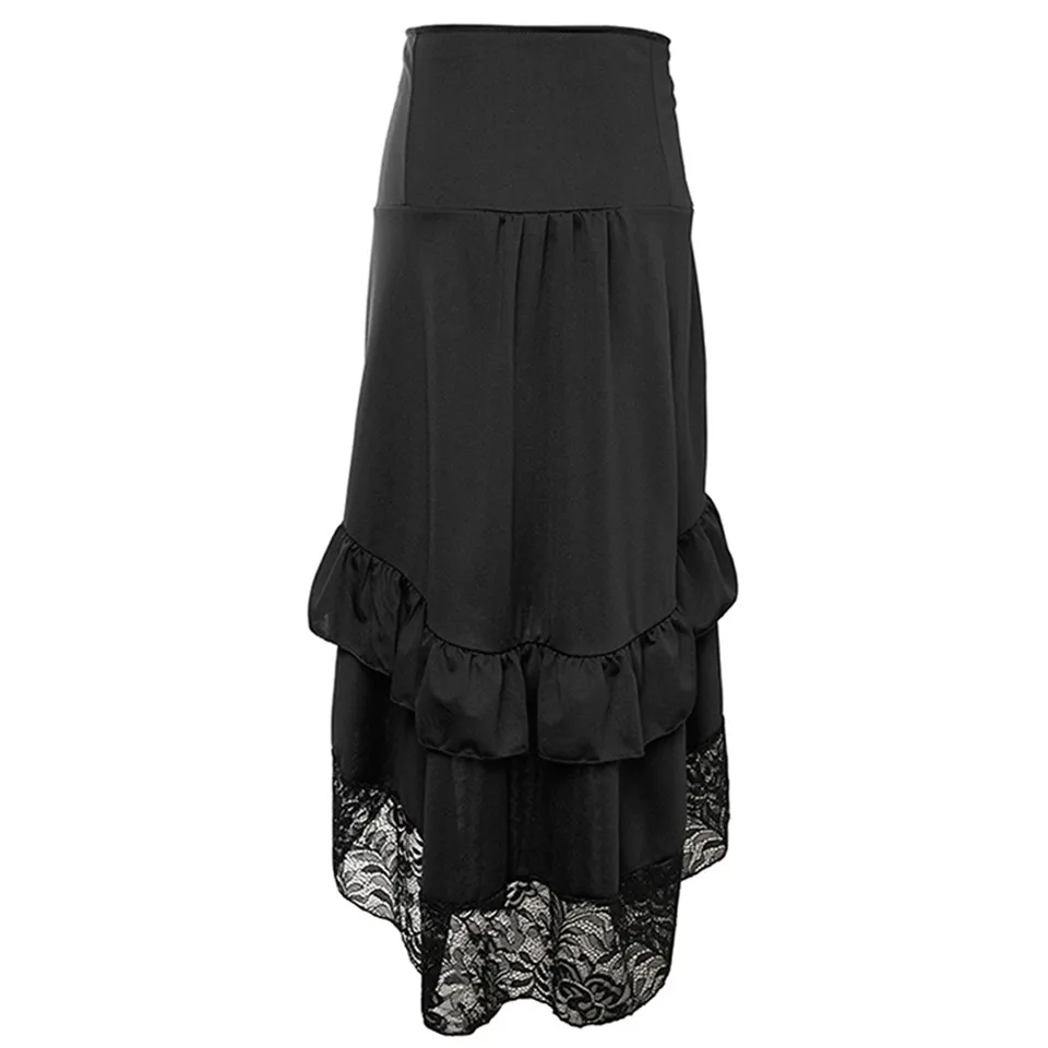 Женская юбка с оборками, Готическая длинная юбка в стиле стимпанк, однотонная кружевная юбка для выступлений и танцев
