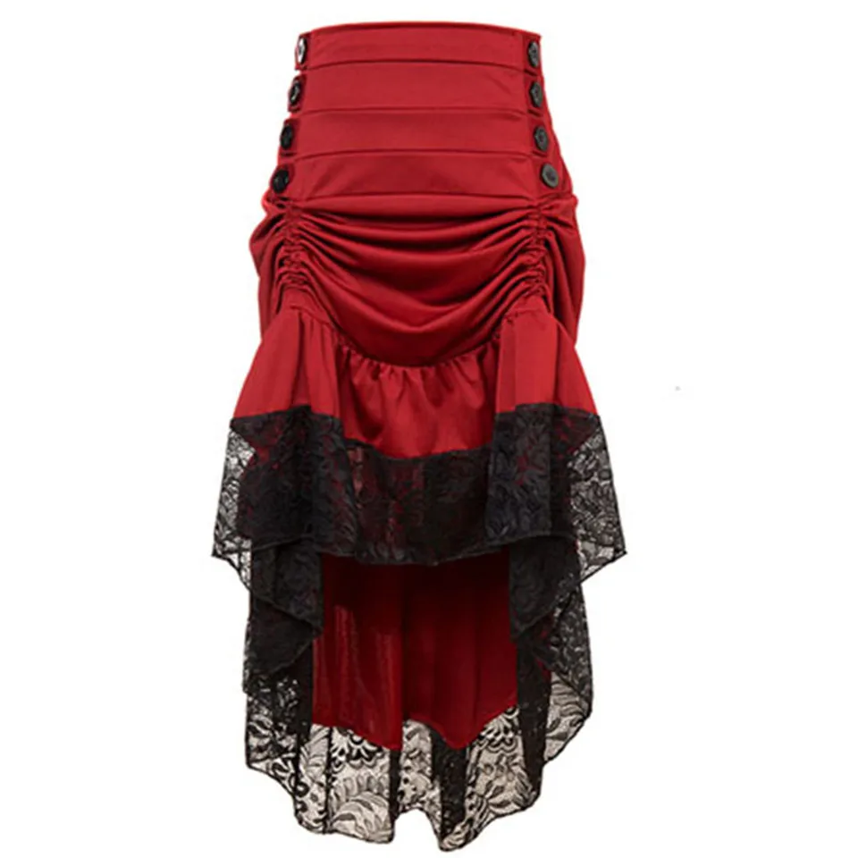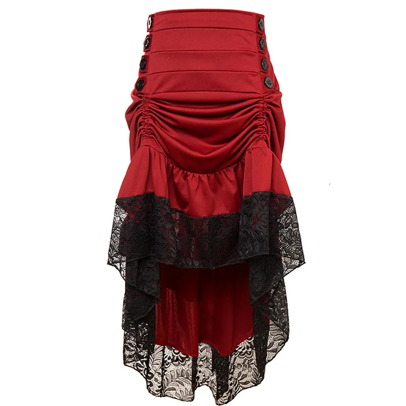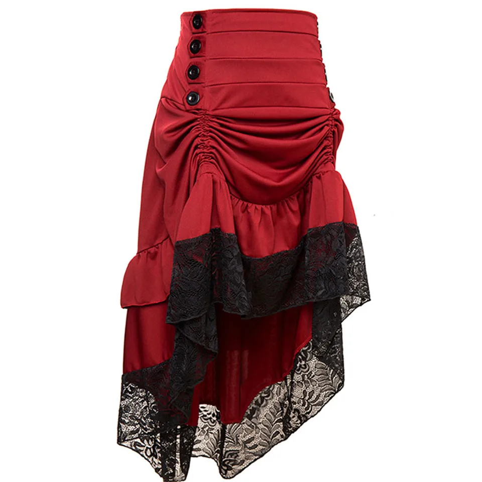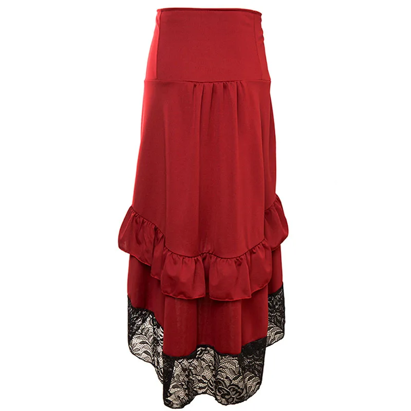 Женская юбка с оборками, Готическая длинная юбка в стиле стимпанк, однотонная кружевная юбка для выступлений и танцев