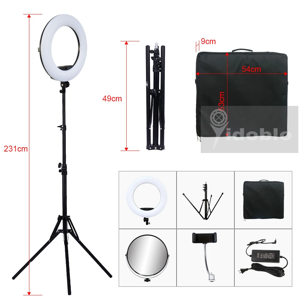 Кольцевой светильник Yidoblo, 96 Вт, FD-480, профессиональная студия красоты, светодиодная кольцевая лампа, 480 светодиодный, лампа для видеосъемки, освесветильник для макияжа, подставка (2 м), сумка