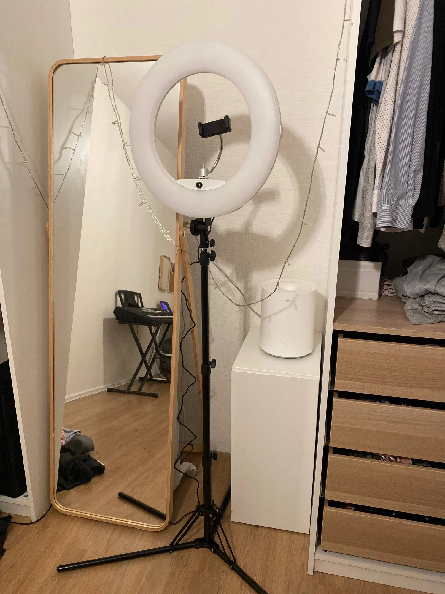 Лампа клевая. Все держится хорошо и в 90 градусах с телефоном тоже без проблем стоит. Свет идеальный. Зеркало хорошего качества, без дефектов. Товаром довольна очень. Штатив не на столько хлипкий как писали, нормальный, устойчивый. Спасибо продавцу.